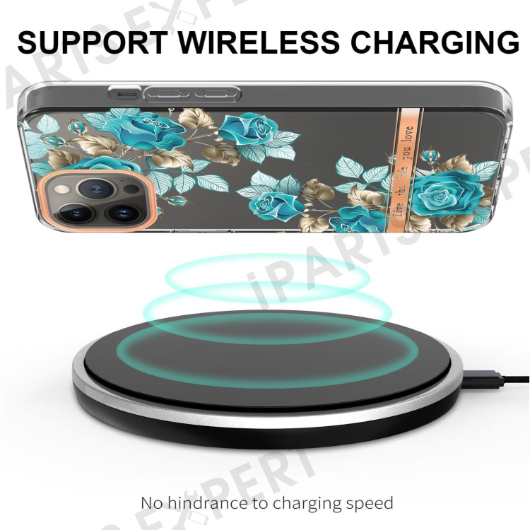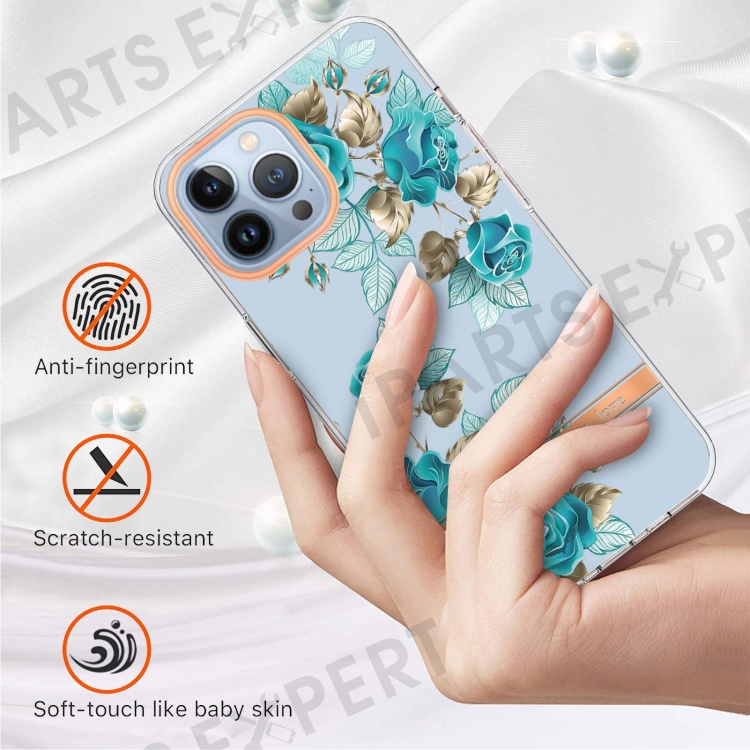 For iPhone 15 Pro Case IMD IML Flower Pattern Electroplated TPU Back Cover - HC002 Blue Rose