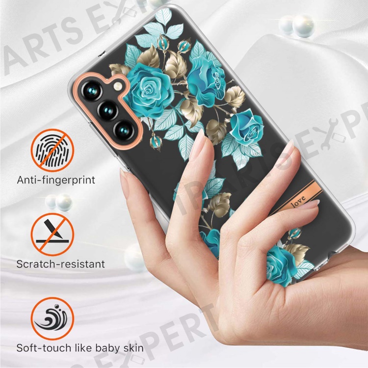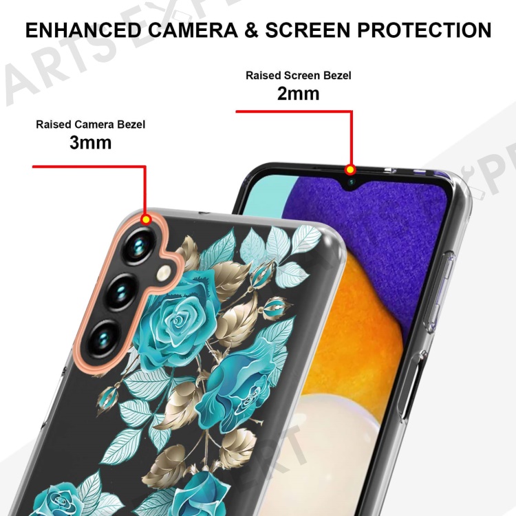 YB IMD-8 Series For Samsung Galaxy A34 5G Protective Shell, Electroplating Soft TPU Case Flower Pattern IML IMD Phone Cover - HC002 Blue Rose