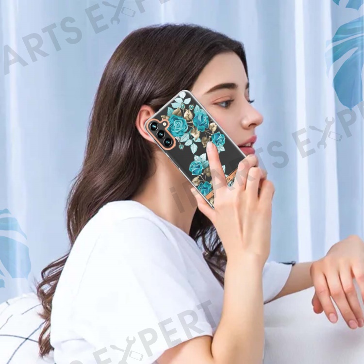 For Samsung Galaxy A54 5G Case IMD IML Flower Pattern Electroplated TPU Back Cover - HC002 Blue Rose