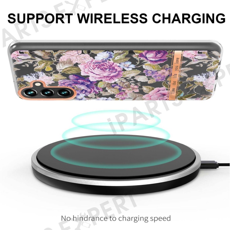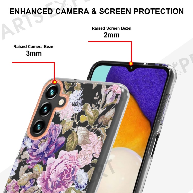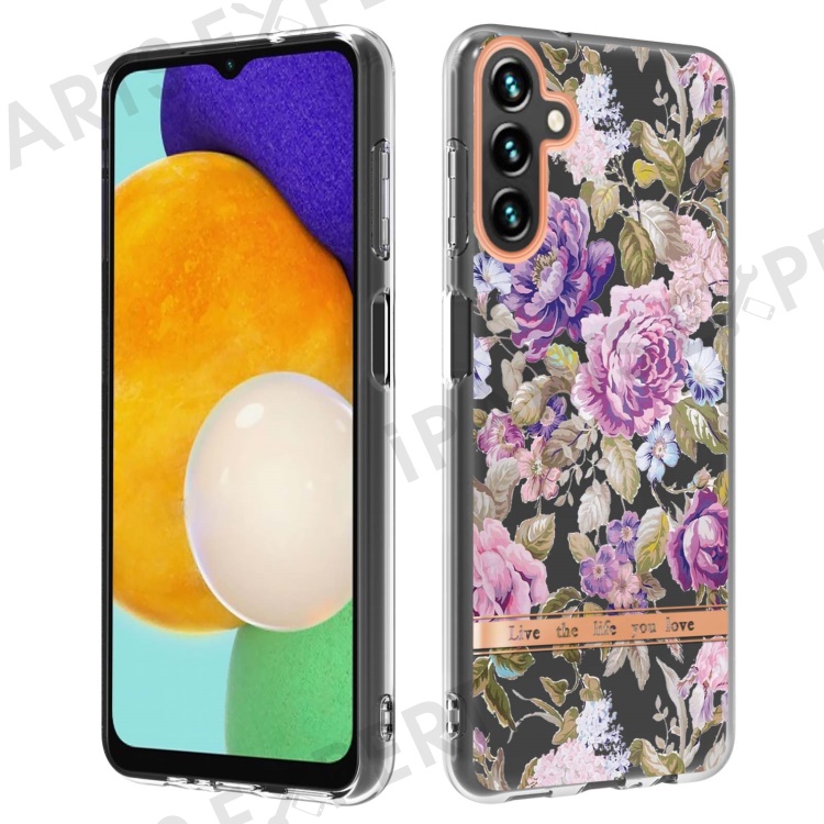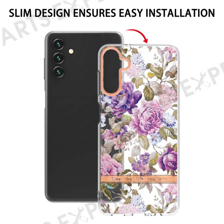For Samsung Galaxy A54 5G Case IMD IML Flower Pattern Electroplated TPU Back Cover - HC006 Purple Peony