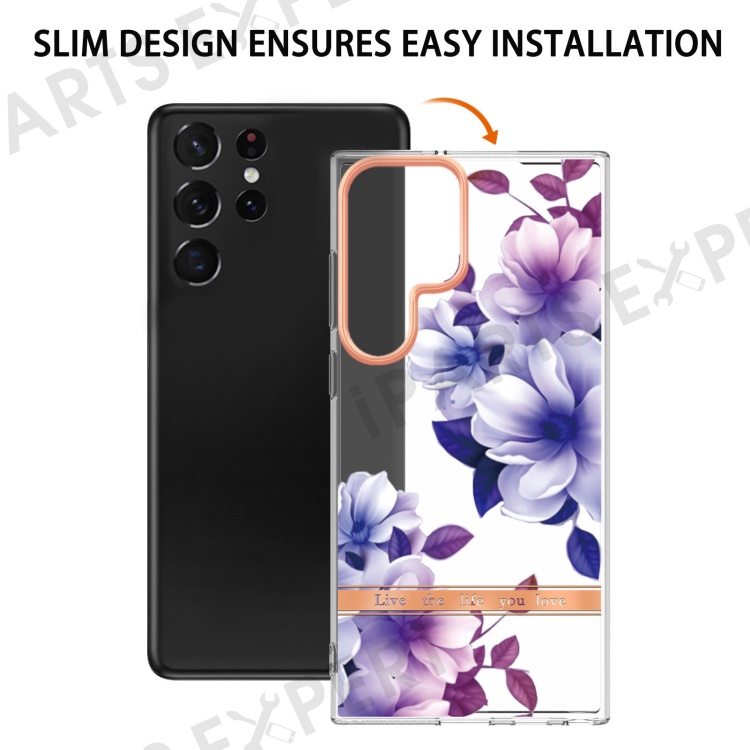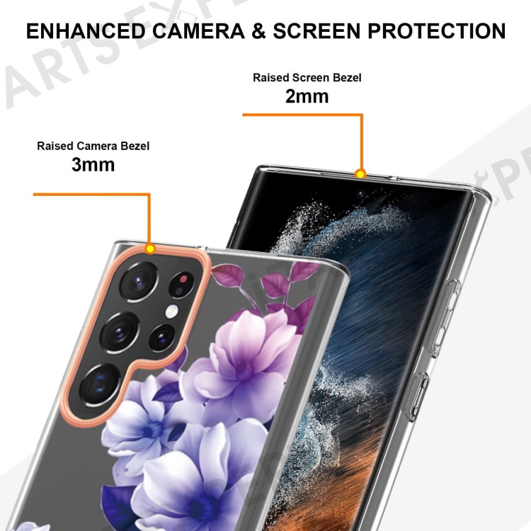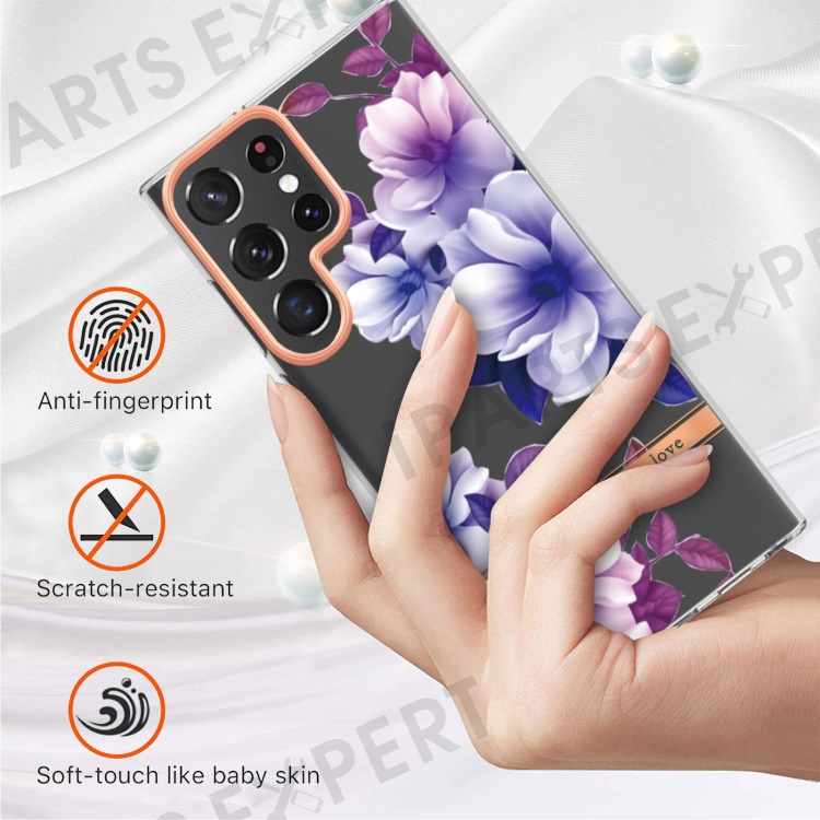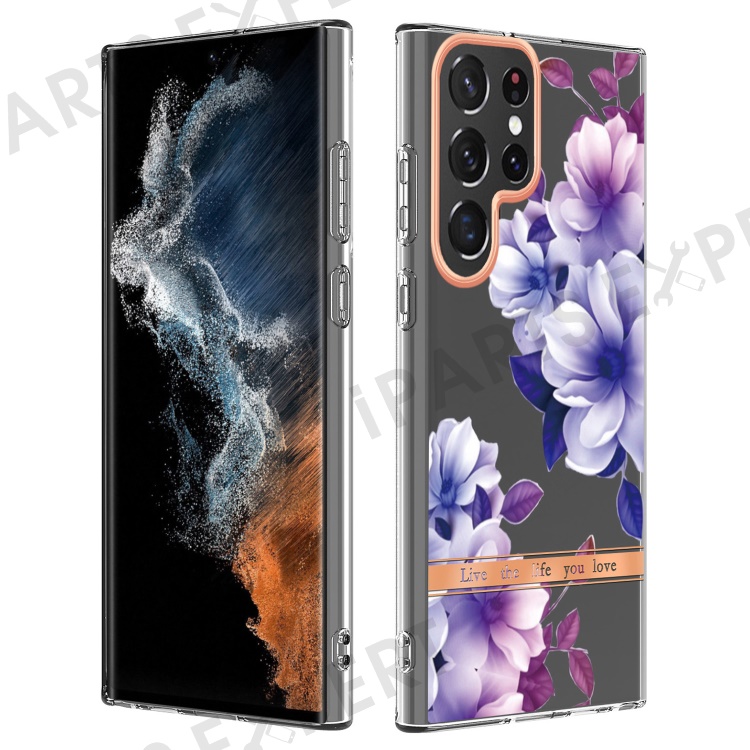 For Samsung Galaxy S23 Ultra Case IMD IML Flower Pattern Electroplated TPU Back Cover - HC004 Purple Begonia