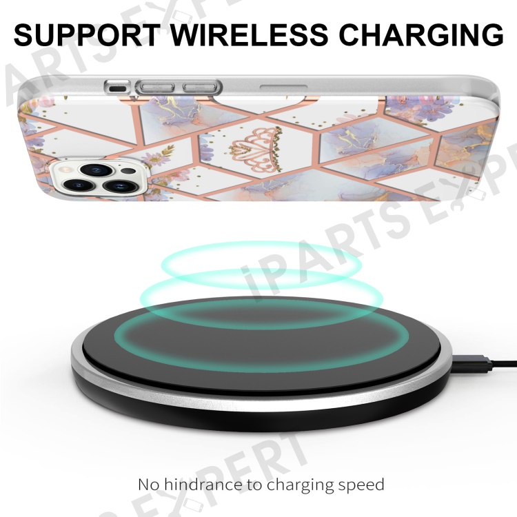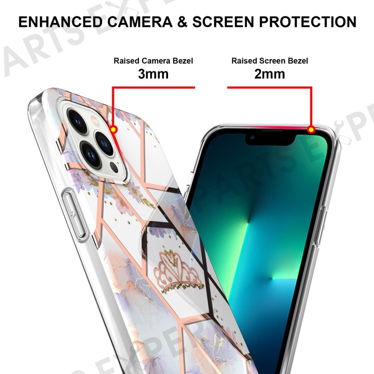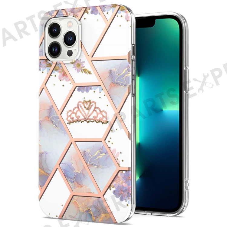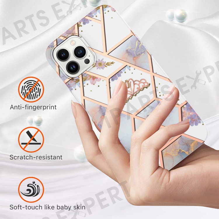 For iPhone 15 Pro Max Case with IMD Marble Flower Pattern TPU Mobile Back Cover - Crown