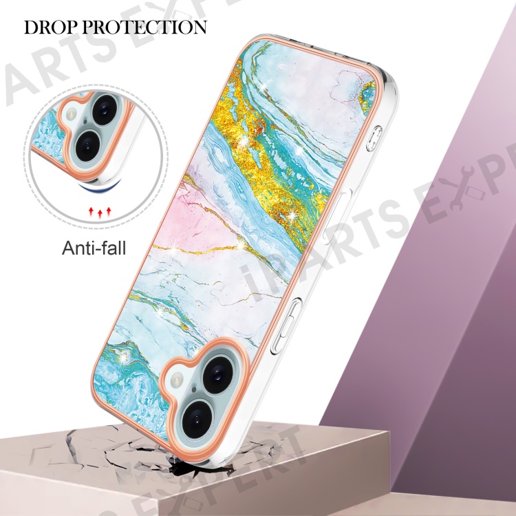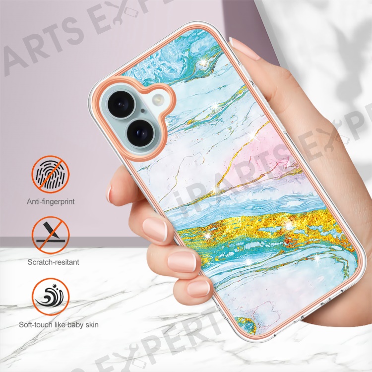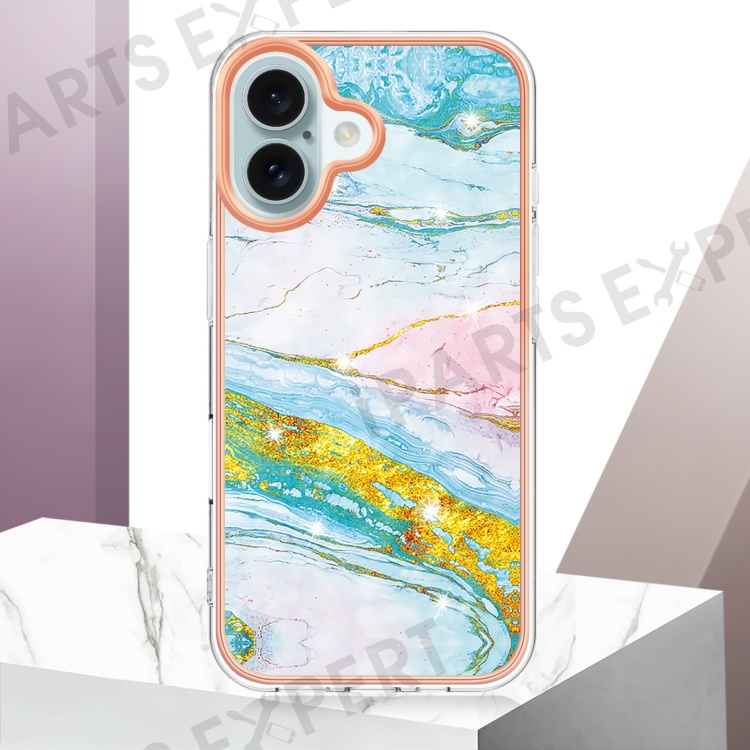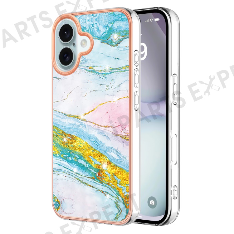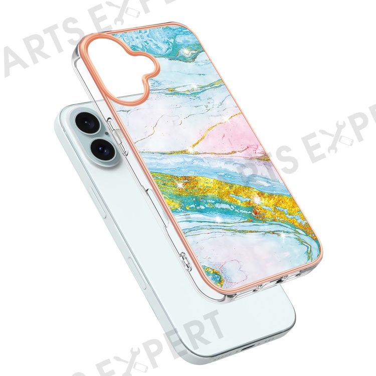 For iPhone 16 TPU Case with IMD Marble Pattern Electroplated Back Cover - Green 004