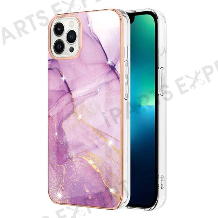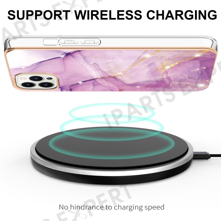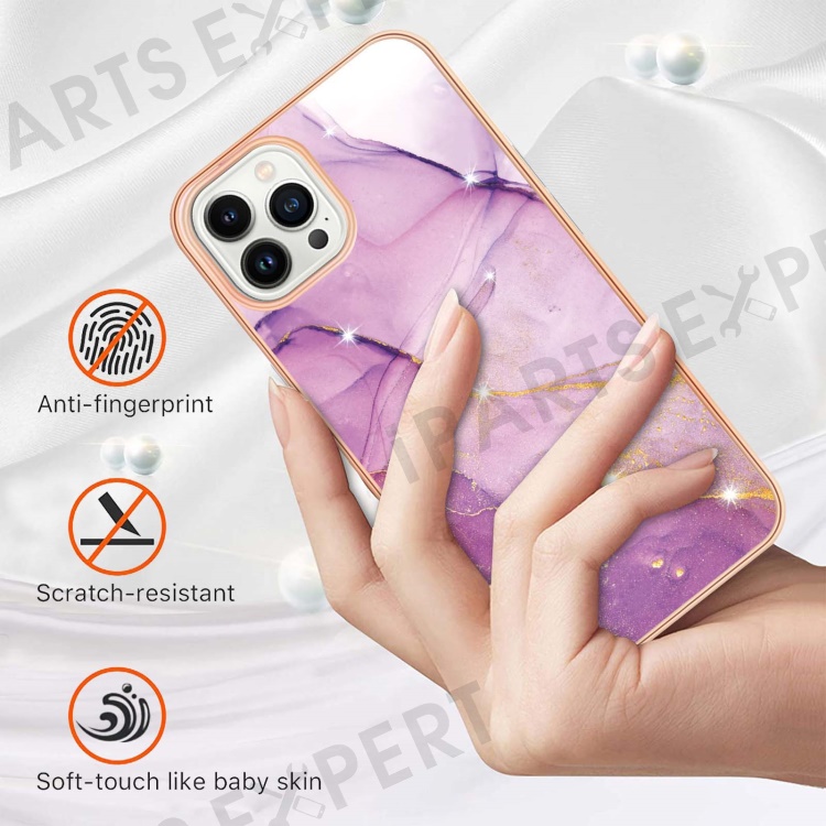 For iPhone 16 Pro TPU Case with IMD Marble Pattern Electroplated Back Cover - Purple 001