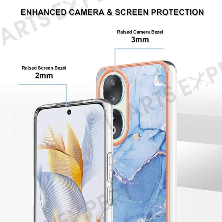 YB IMD Series-16 Style-E Marble Pattern Electroplating Cover for Honor 90 , Anti-Scratch 2.0mm TPU IMD Phone Case - Blue