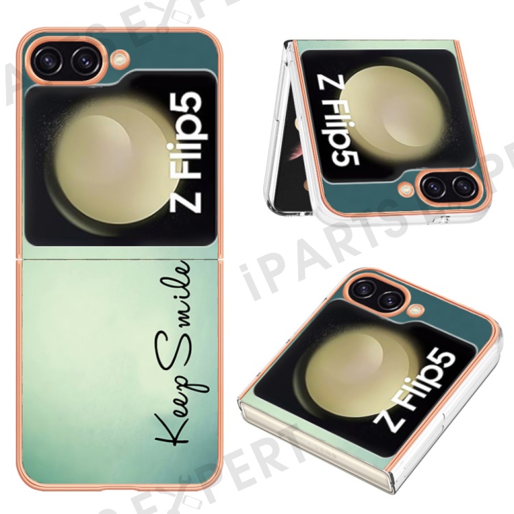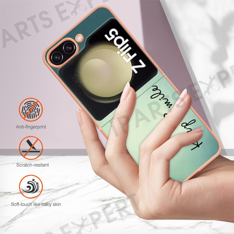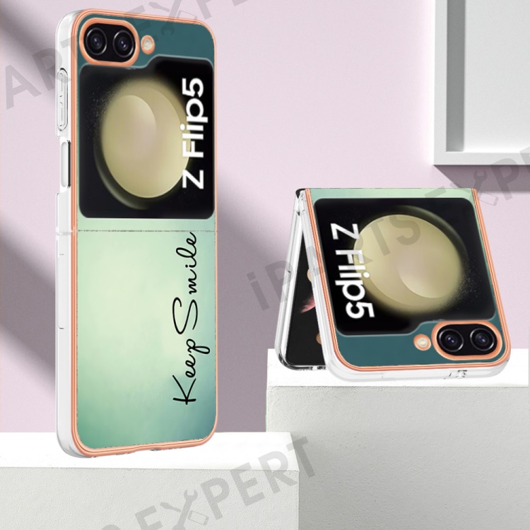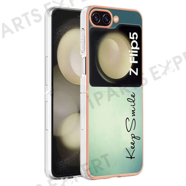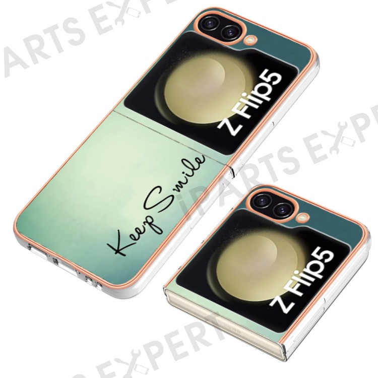 YB IMD Series-19 Style D For Samsung Galaxy Z Flip5 5G Electroplating Phone Case Soft 2.0mm TPU IMD Pattern Phone Cover - Keep Smile