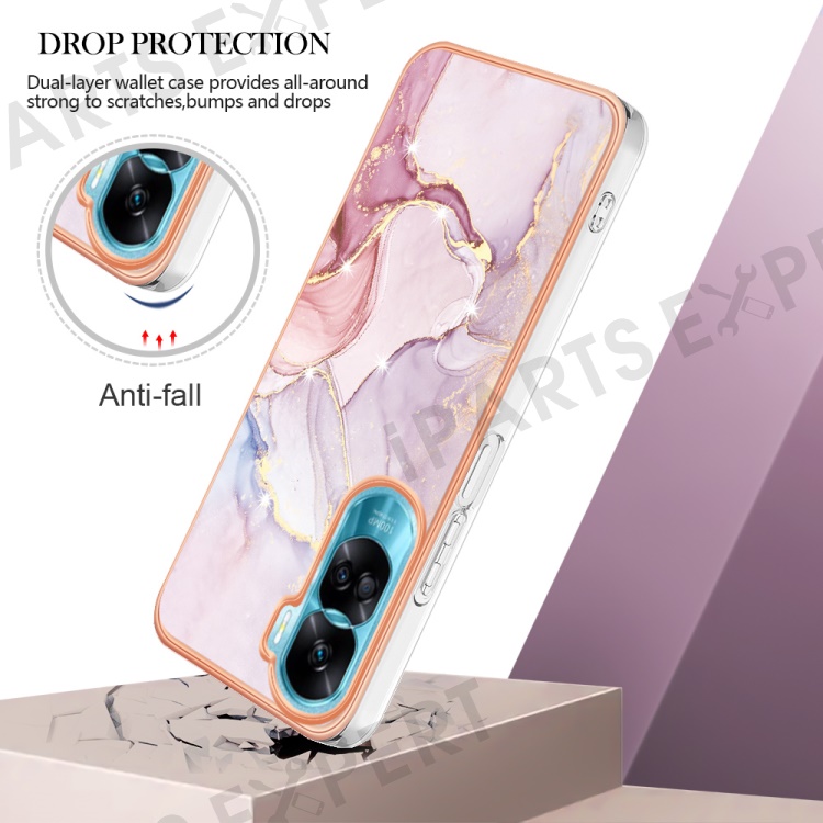 For Honor 90 Lite 5G / X50i 5G TPU Case with IMD Marble Pattern Electroplated Back Cover - Rose Gold 005