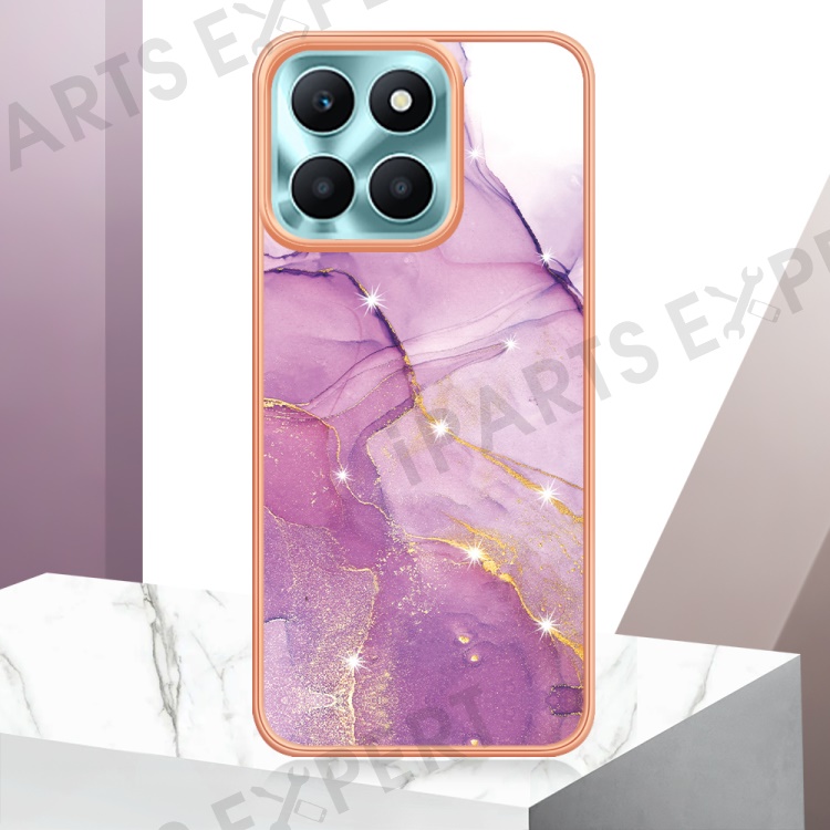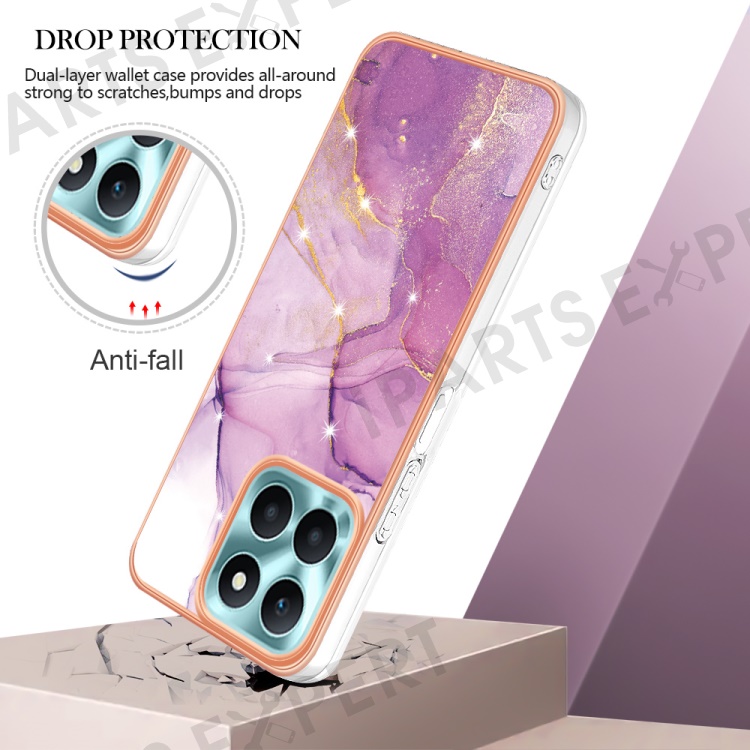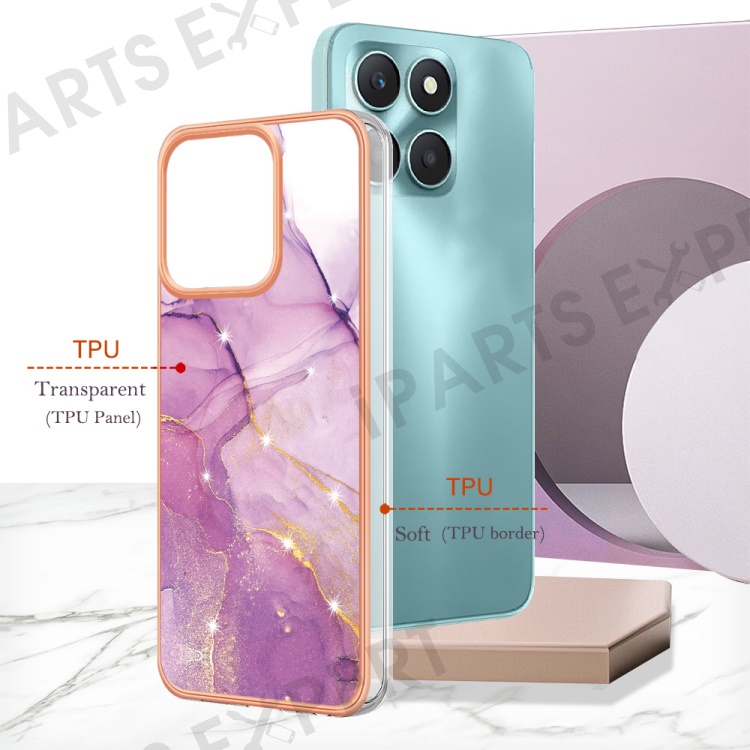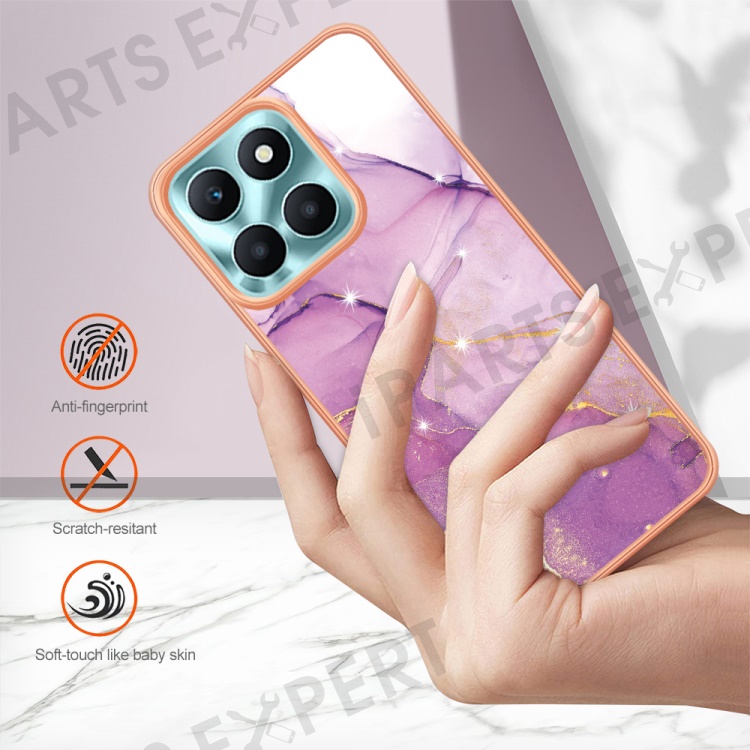 For Honor X6a 4G TPU Case with IMD Marble Pattern Electroplated Back Cover - Purple 001