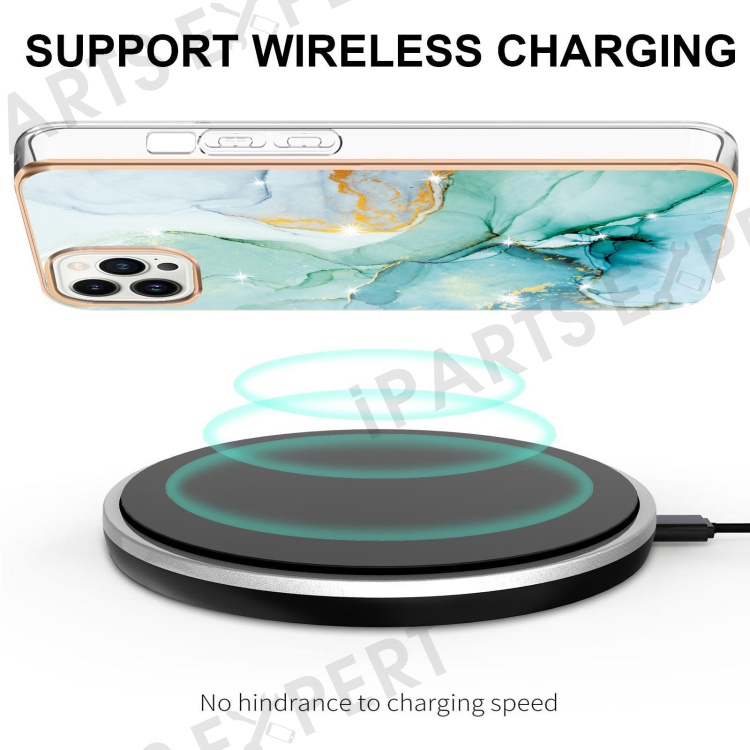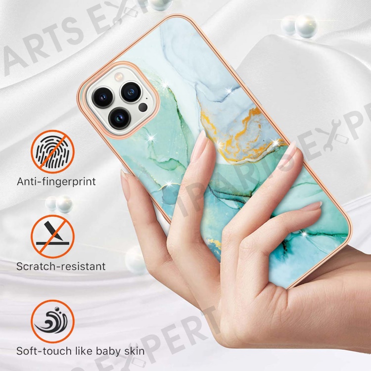 For iPhone 15 Pro TPU Case with IMD Marble Pattern Electroplated Back Cover - Green 003