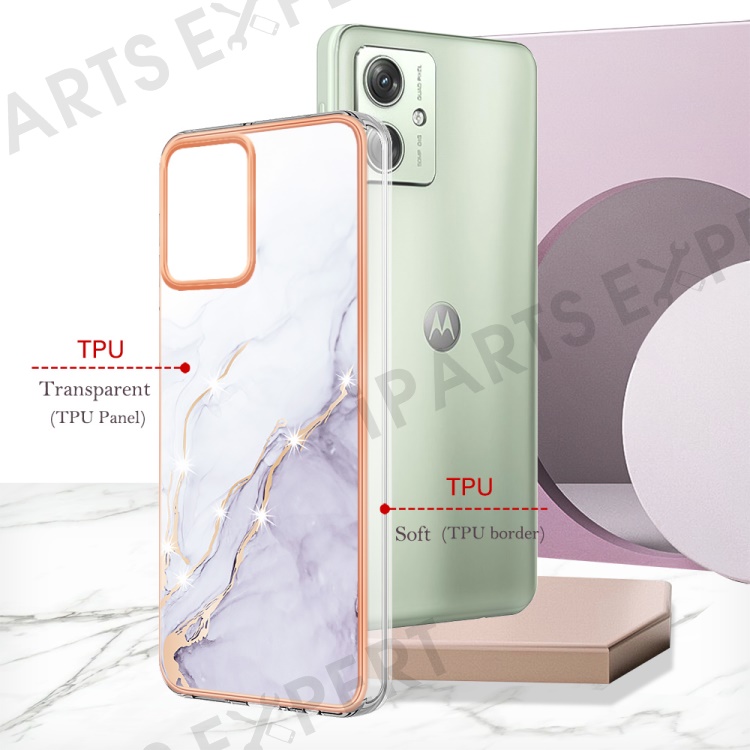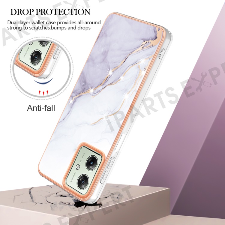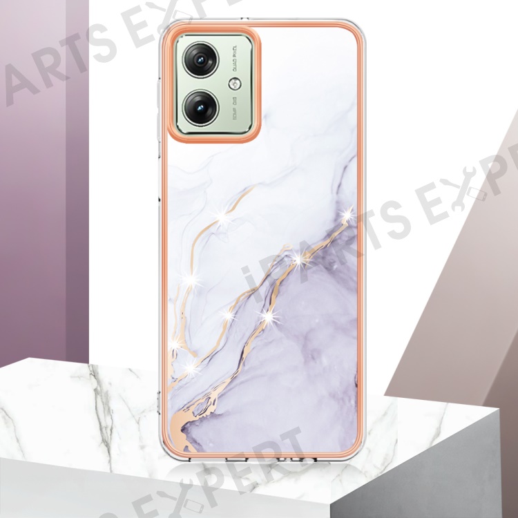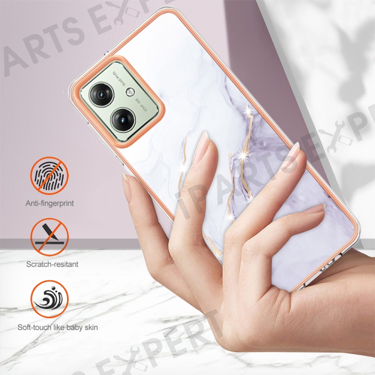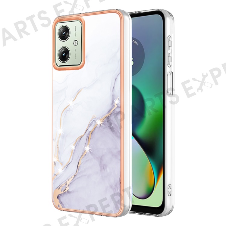 For Motorola Moto G54 5G TPU Case with IMD Marble Pattern Electroplated Back Cover - White 006
