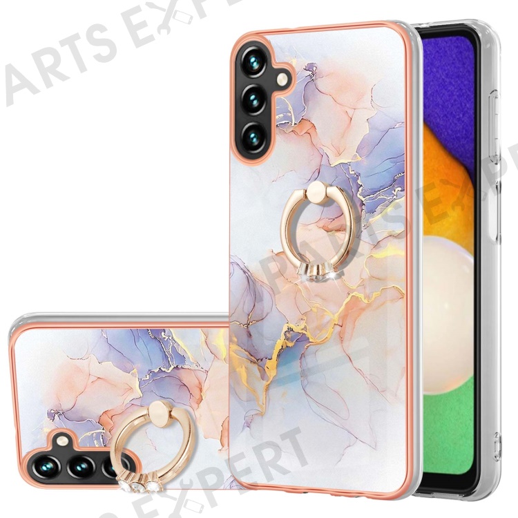 For Samsung Galaxy A14 5G / A14 4G Case with Ring Kickstand IMD Marble Pattern TPU Back Cover - Milky Way Marble White