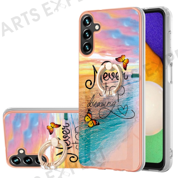 For Samsung Galaxy A14 5G / A14 4G Case with Ring Kickstand IMD Marble Pattern TPU Back Cover - Never Stop Dreaming