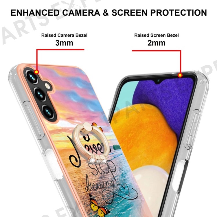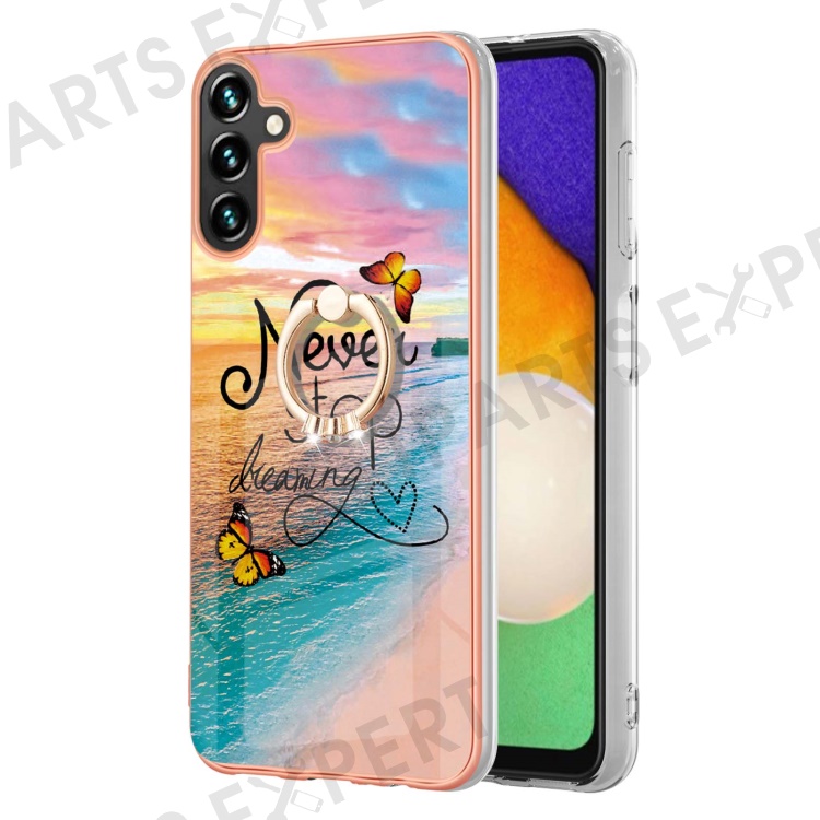 For Samsung Galaxy A54 5G, Impact Resistant Case with Ring Kickstand IMD Marble Pattern TPU Back Cover - Never Stop Dreaming