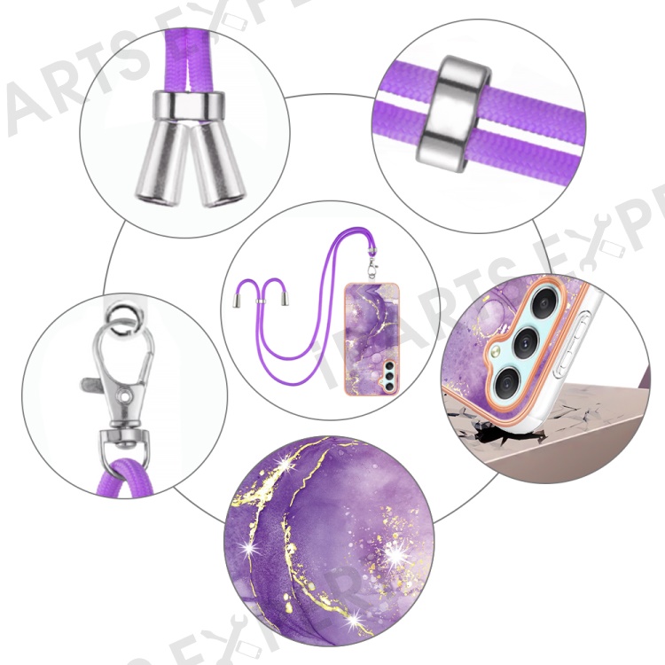 For Samsung Galaxy A25 5G (Global) (161.0 x 76.5 x 8.3mm) Case with Shoulder Strap IMD IML Flower Pattern TPU Back Cover - Purple 002