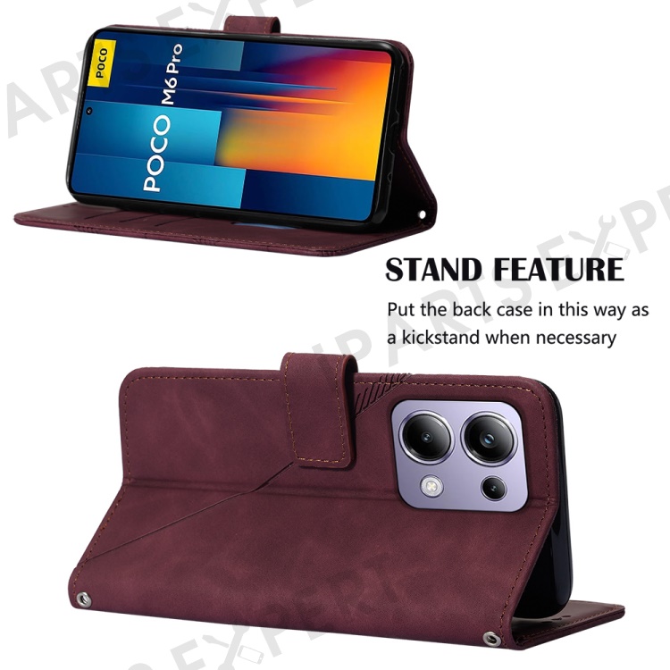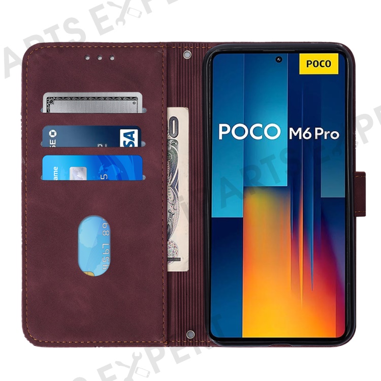 For Xiaomi Redmi Note 13 Pro 4G / Poco M6 Pro 4G Leather Case with Hand Strap Wallet Stand Phone Cover - Wine Red