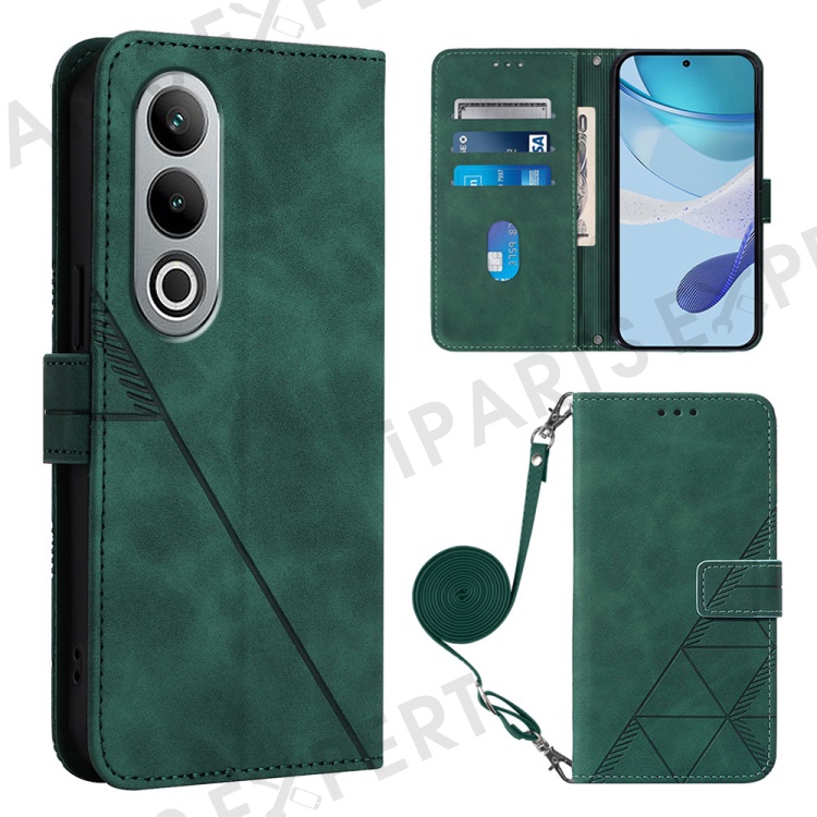 For OnePlus Nord CE4 5G Leather Case with Shoulder Strap Wallet Stand Phone Cover - Blackish Green