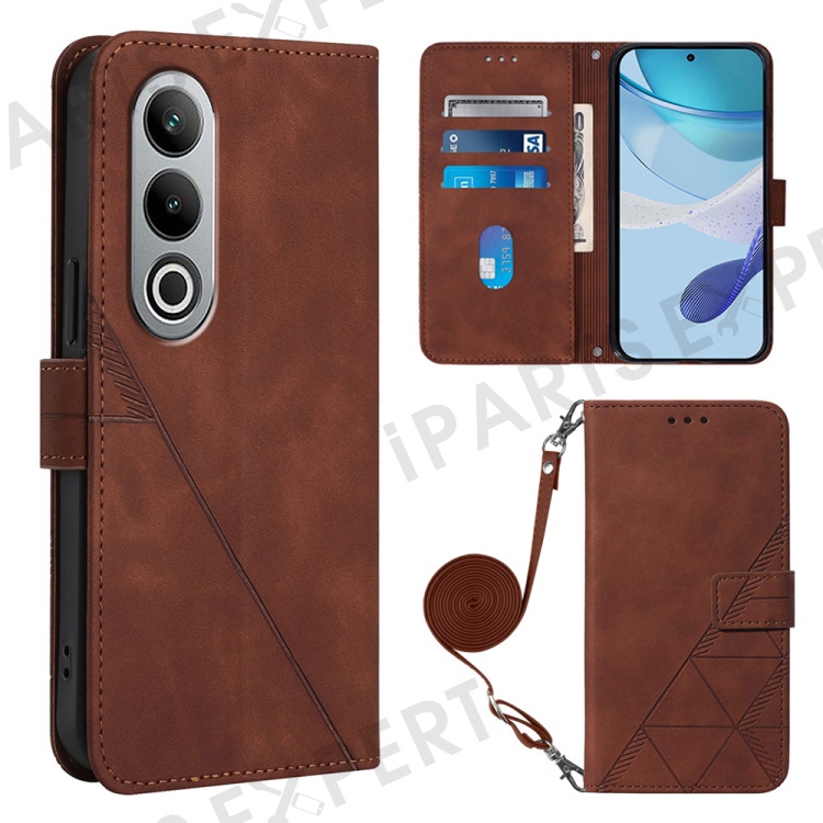 For OnePlus Nord CE4 5G Leather Case with Shoulder Strap Wallet Stand Phone Cover - Brown