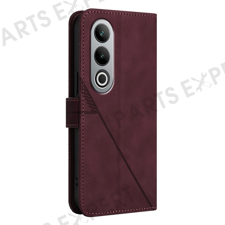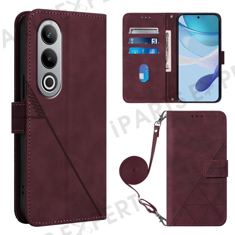 For OnePlus Nord CE4 5G Leather Case with Shoulder Strap Wallet Stand Phone Cover - Wine Red