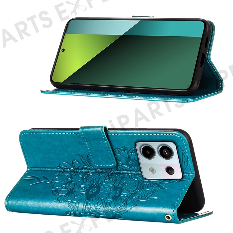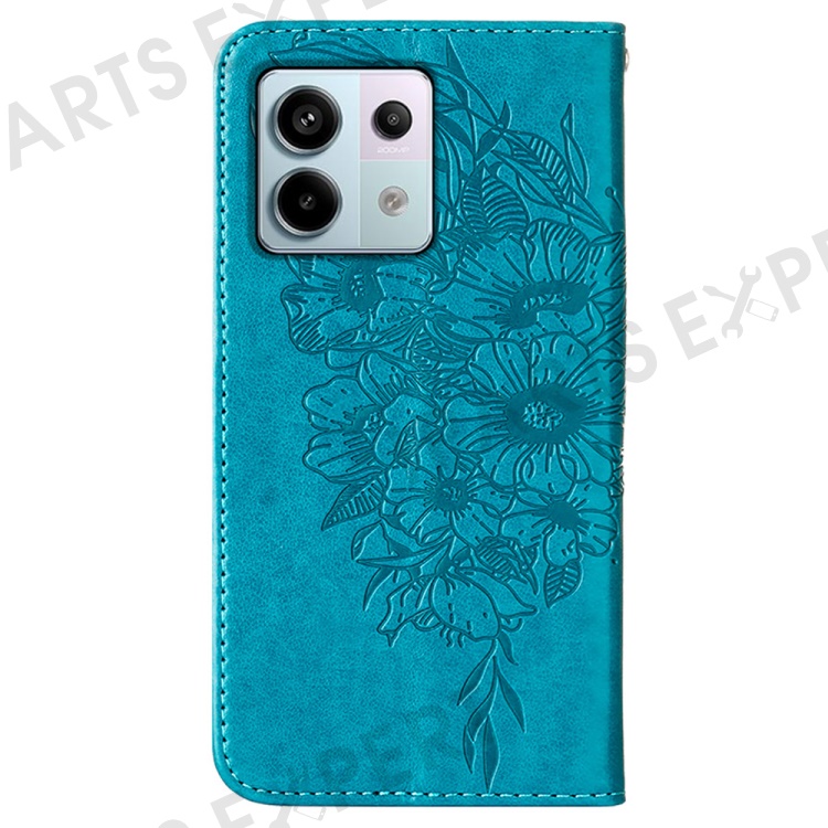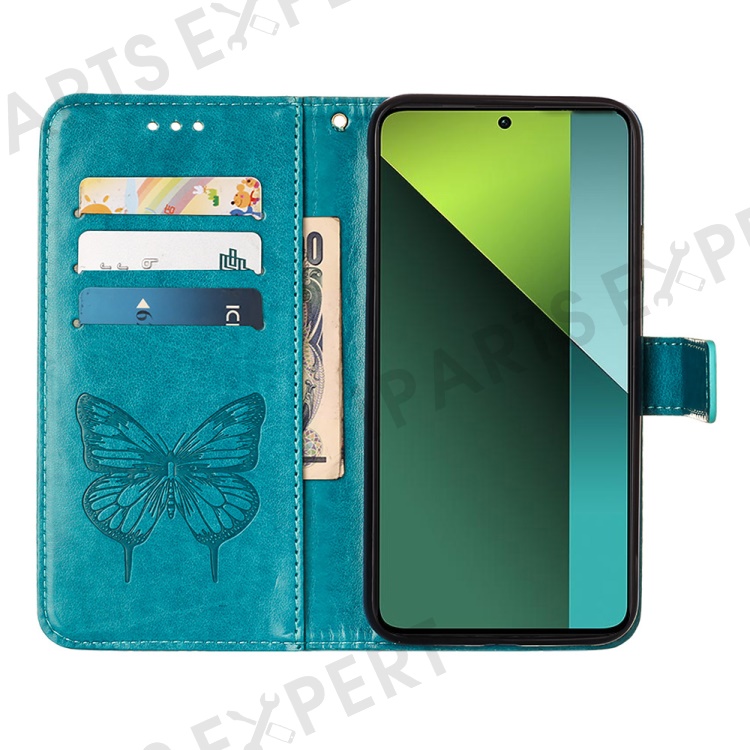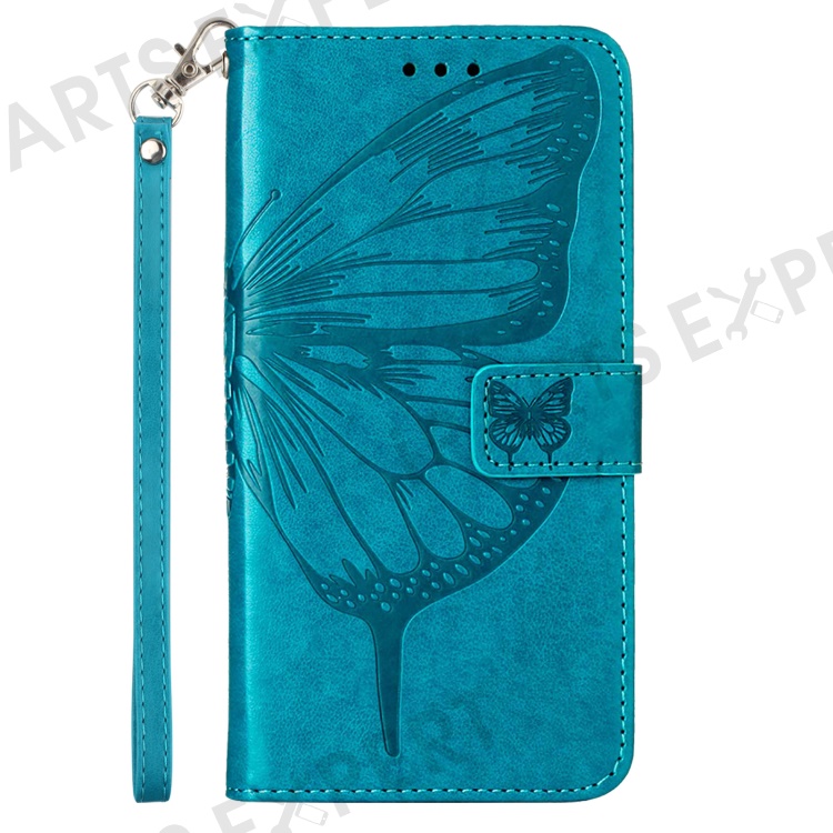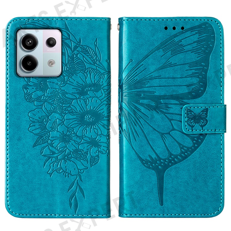 For Xiaomi Redmi Note 13 Pro 5G / Poco X6 5G Wallet Case with Wrist Strap Butterfly Imprint Leather Phone Cover - Blue