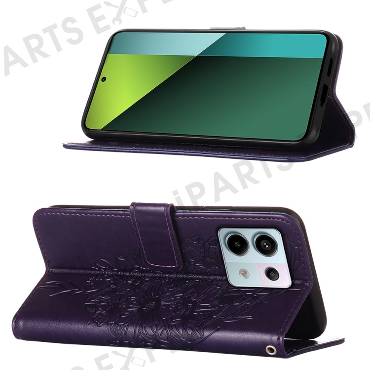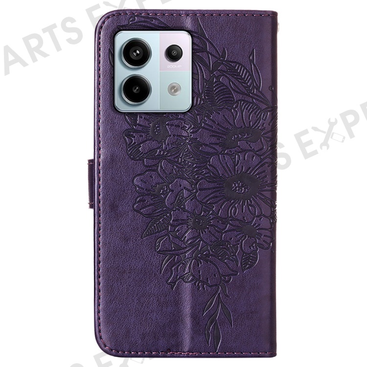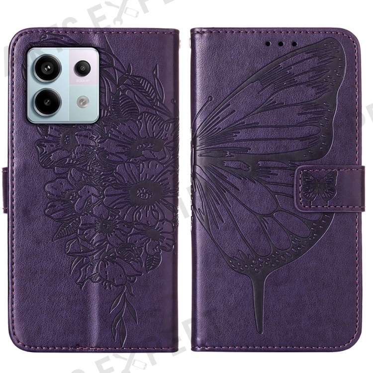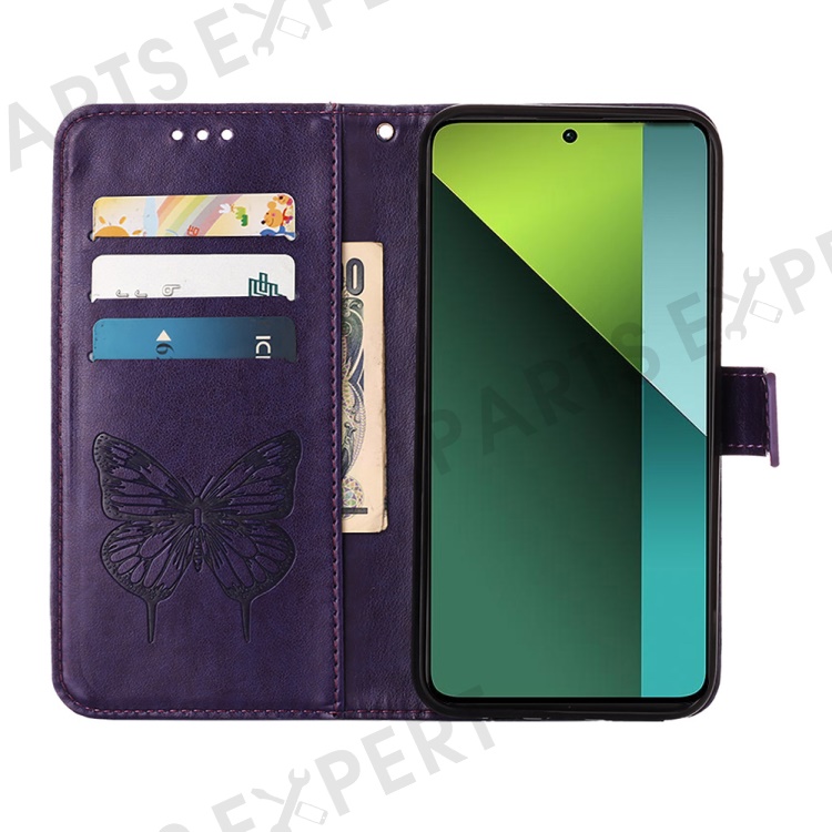 For Xiaomi Redmi Note 13 Pro 5G / Poco X6 5G Wallet Case with Wrist Strap Butterfly Imprint Leather Phone Cover - Dark Purple