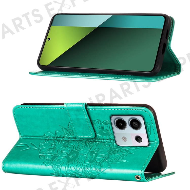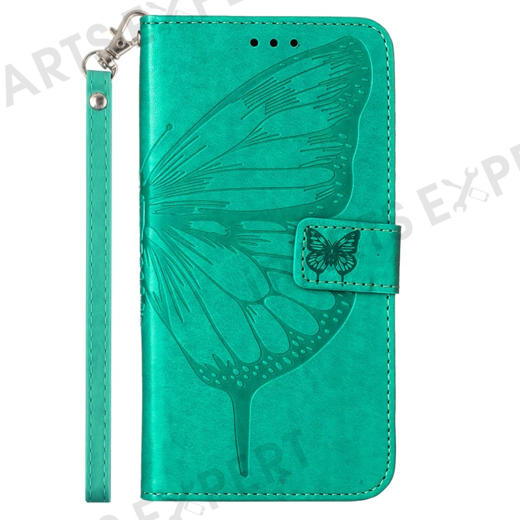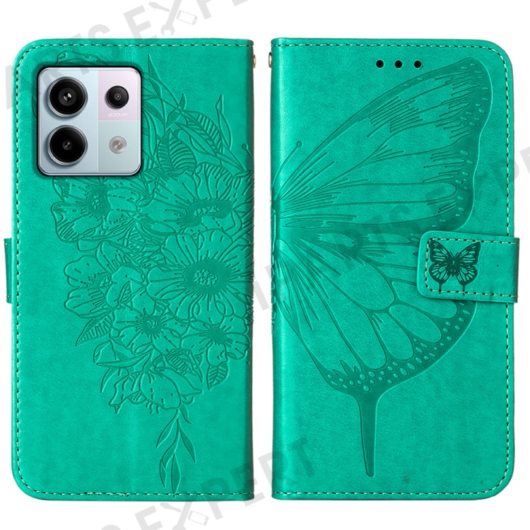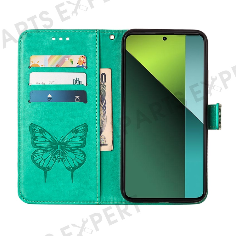For Xiaomi Redmi Note 13 Pro 5G / Poco X6 5G Wallet Case with Wrist Strap Butterfly Imprint Leather Phone Cover - Green