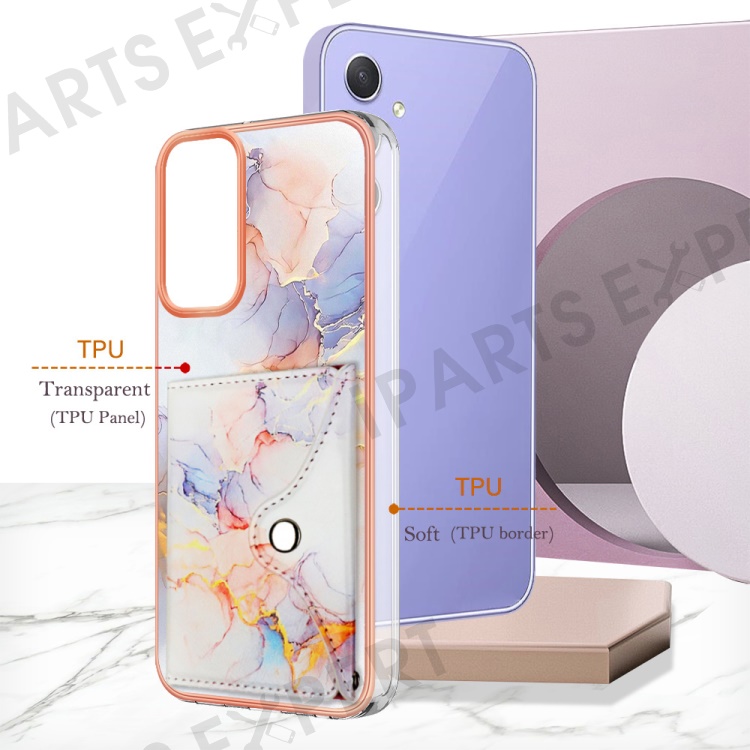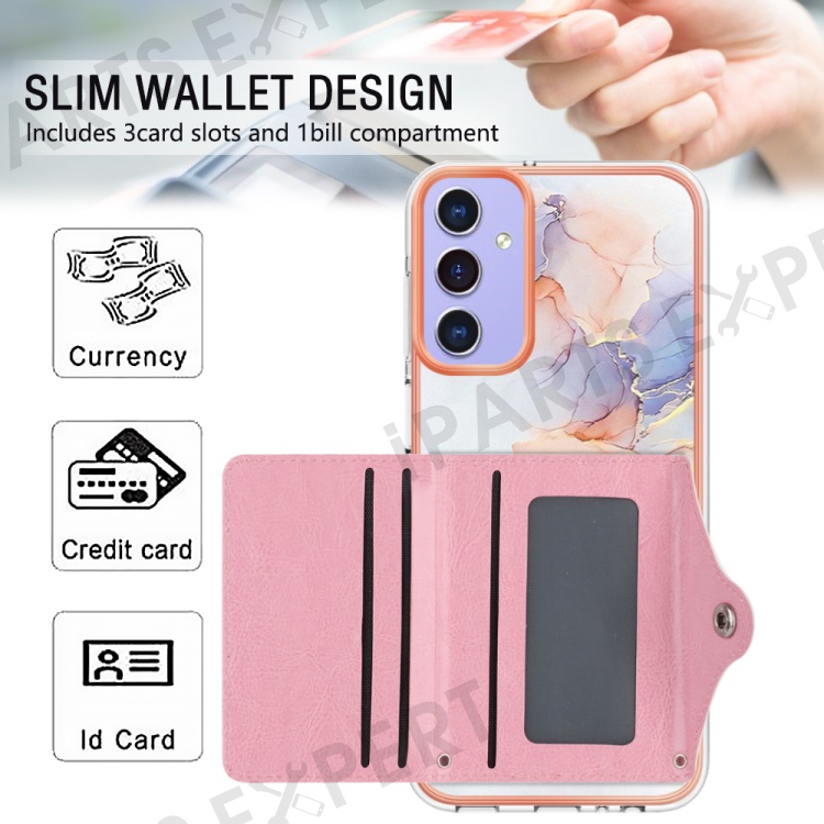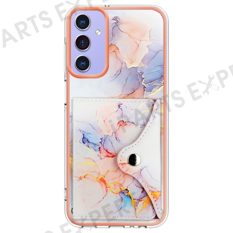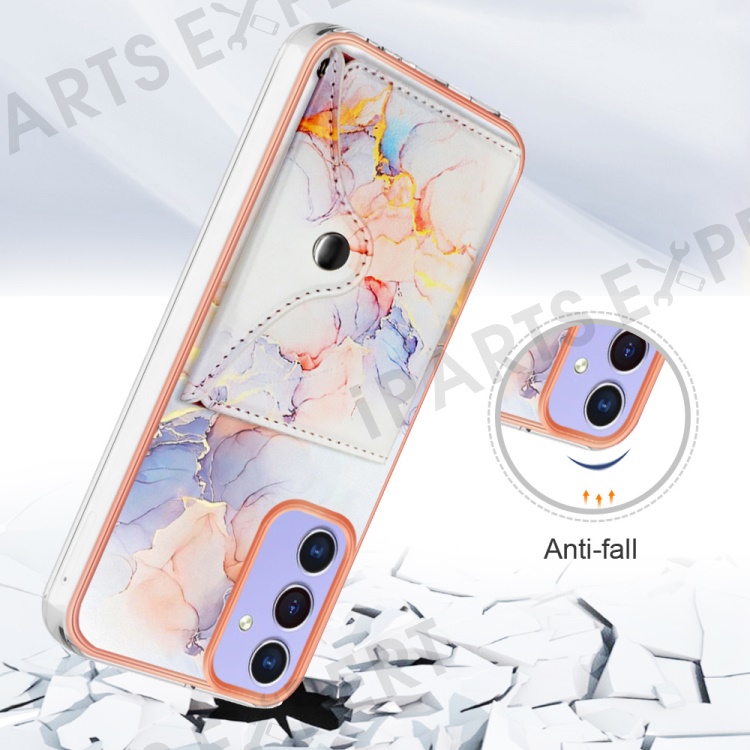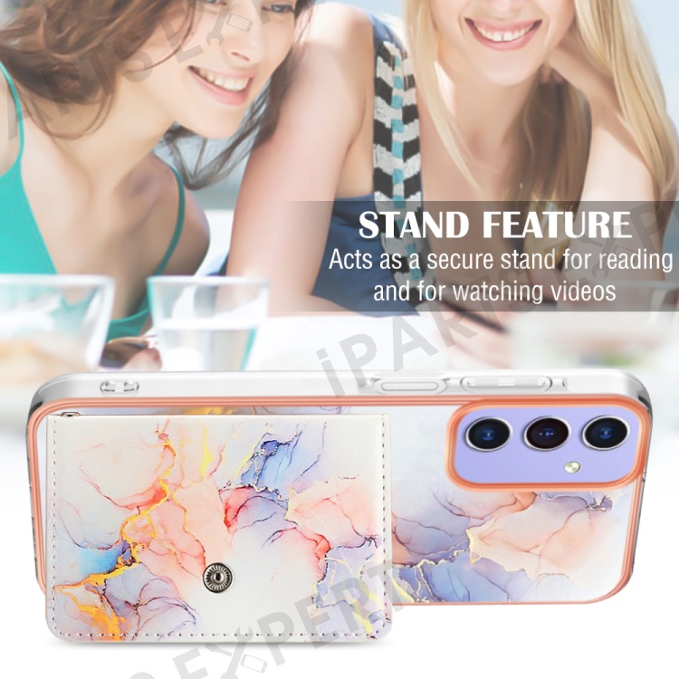 YB Leather Coating Series-9 for Samsung Galaxy A15 5G Case Card Slots IMD Marble Pattern Phone Cover - 004 Marble White