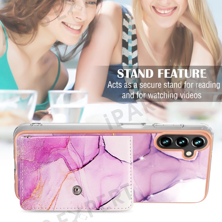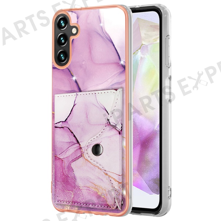 YB Leather Coating Series-9 for Samsung Galaxy A35 5G Case IMD Pattern Leather+TPU Phone Cover with Card Bag - 001 Purple