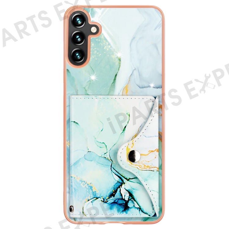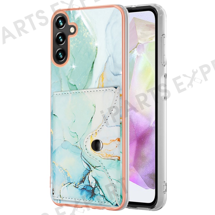 YB Leather Coating Series-9 for Samsung Galaxy A35 5G Case IMD Pattern Leather+TPU Phone Cover with Card Bag - 003 Green