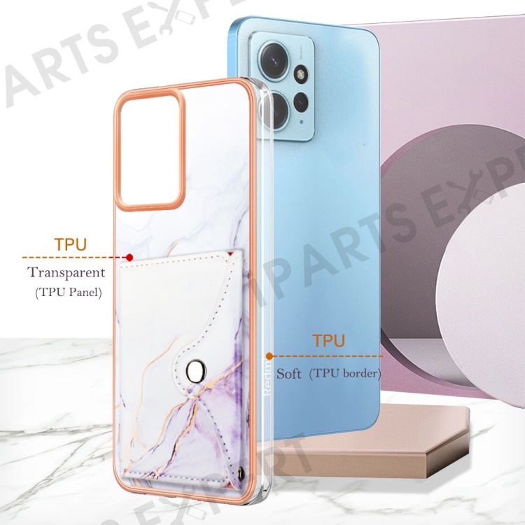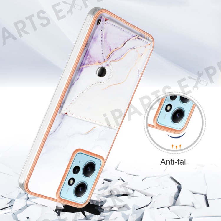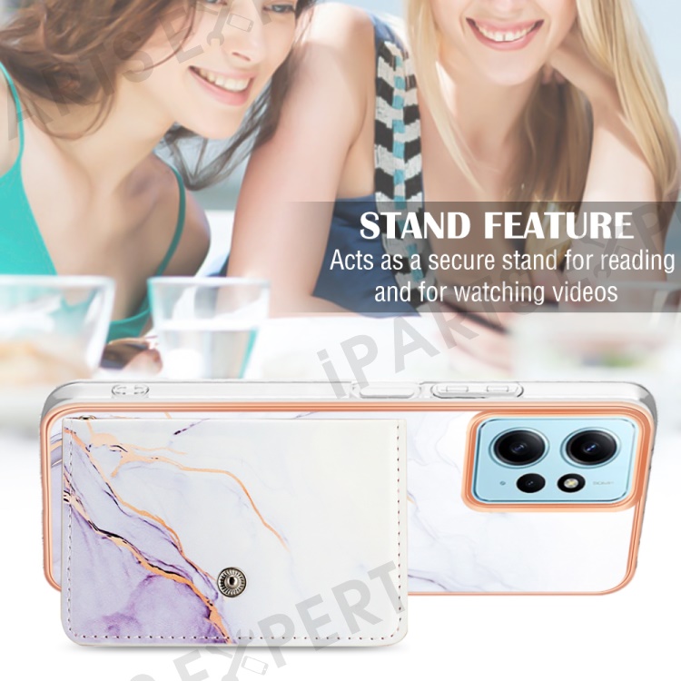 YB Leather Coating Series-9 for Xiaomi Redmi Note 12 4G IMD Case Leather+TPU Kickstand Phone Cover - 006 White Purple