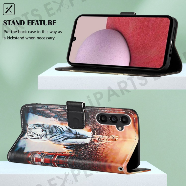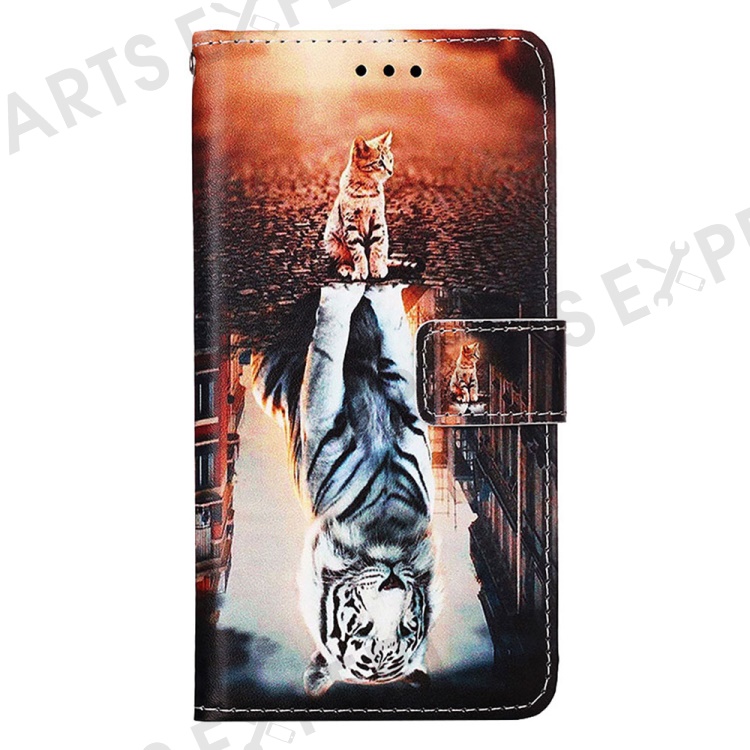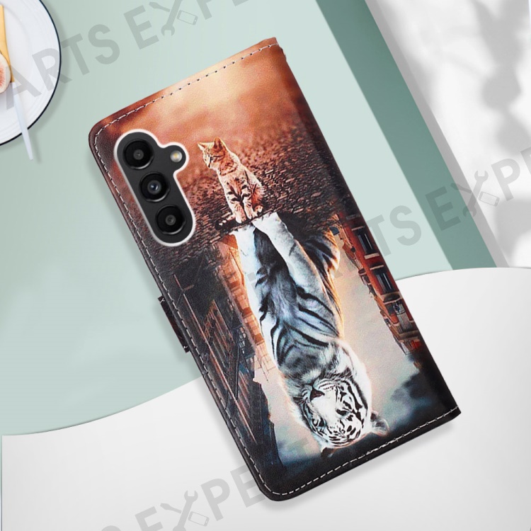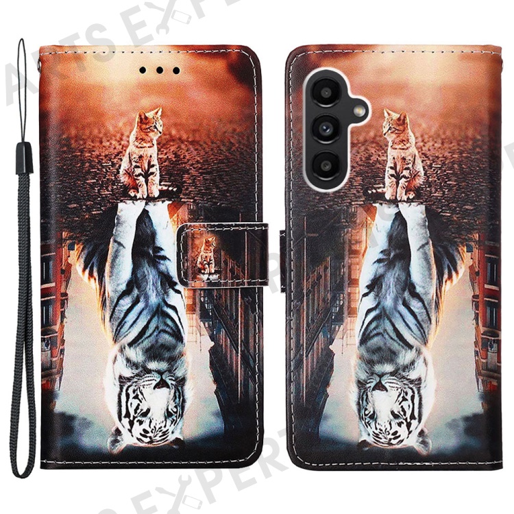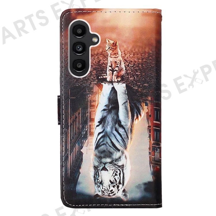 For Samsung Galaxy A24 4G (162.1mm) Leather Case with Strap and Card Holder Pattern Printing Phone Stand Cover - Cat and Tiger