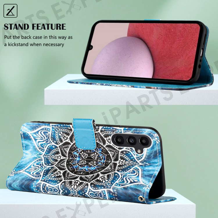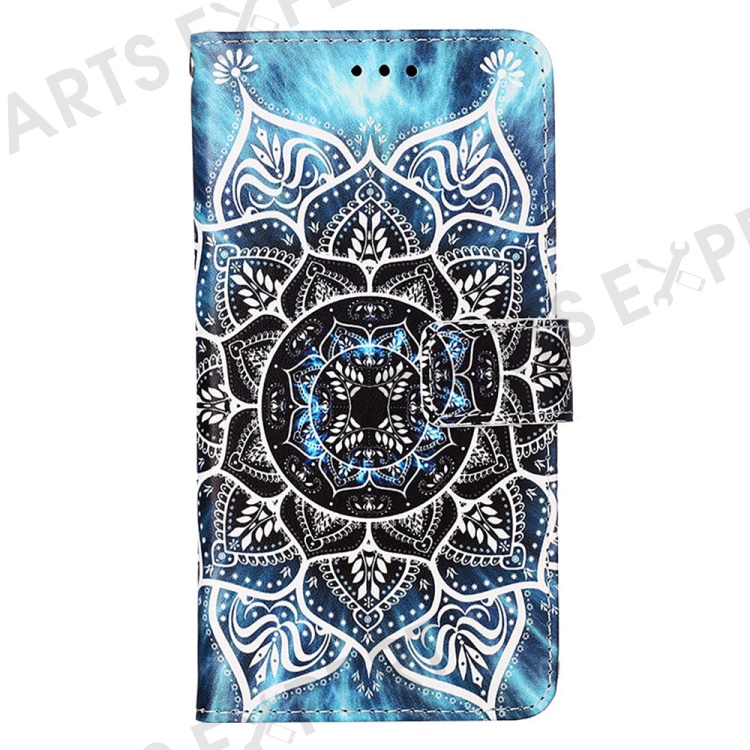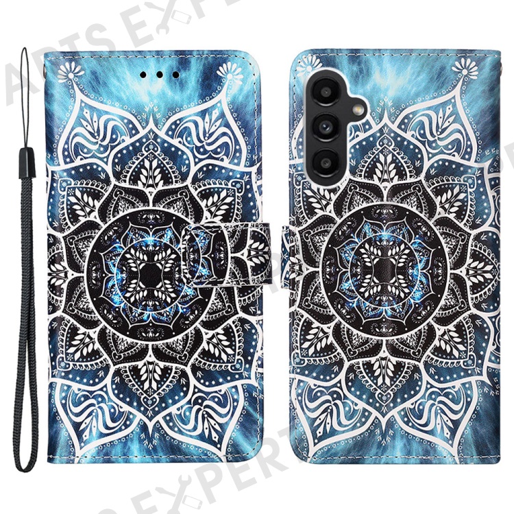 For Samsung Galaxy A24 4G (162.1mm) Leather Case with Strap and Card Holder Pattern Printing Phone Stand Cover - Mandala Flower