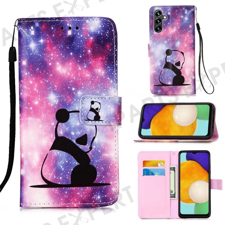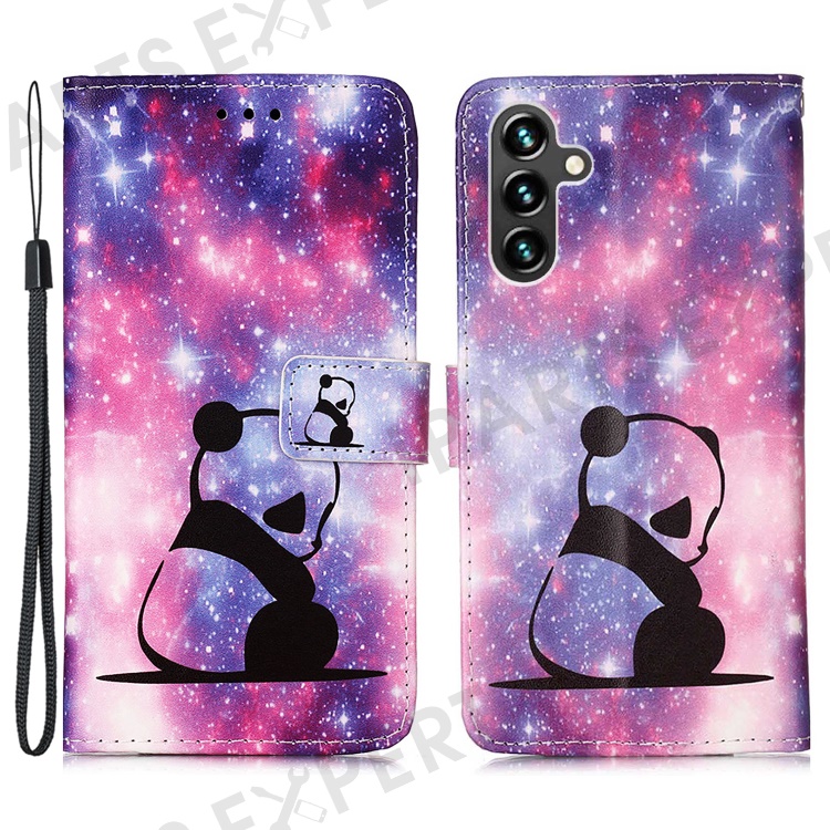 For Samsung Galaxy A54 5G Leather Case with Strap and Card Holder Pattern Printing Phone Stand Cover - Baby Panda