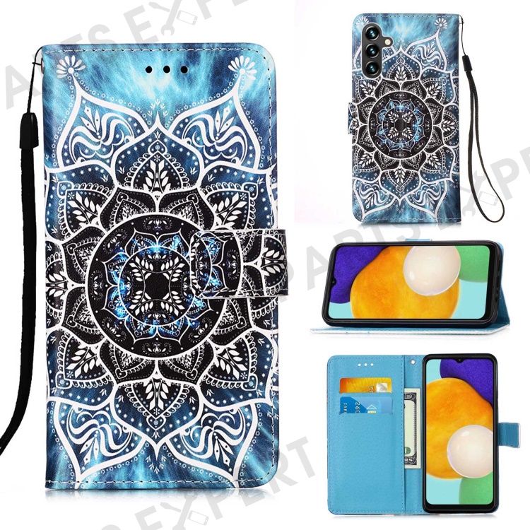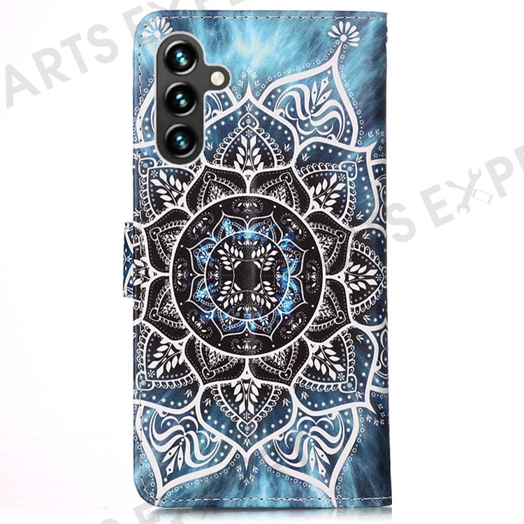For Samsung Galaxy A54 5G Leather Case with Strap and Card Holder Pattern Printing Phone Stand Cover - Mandala Flower