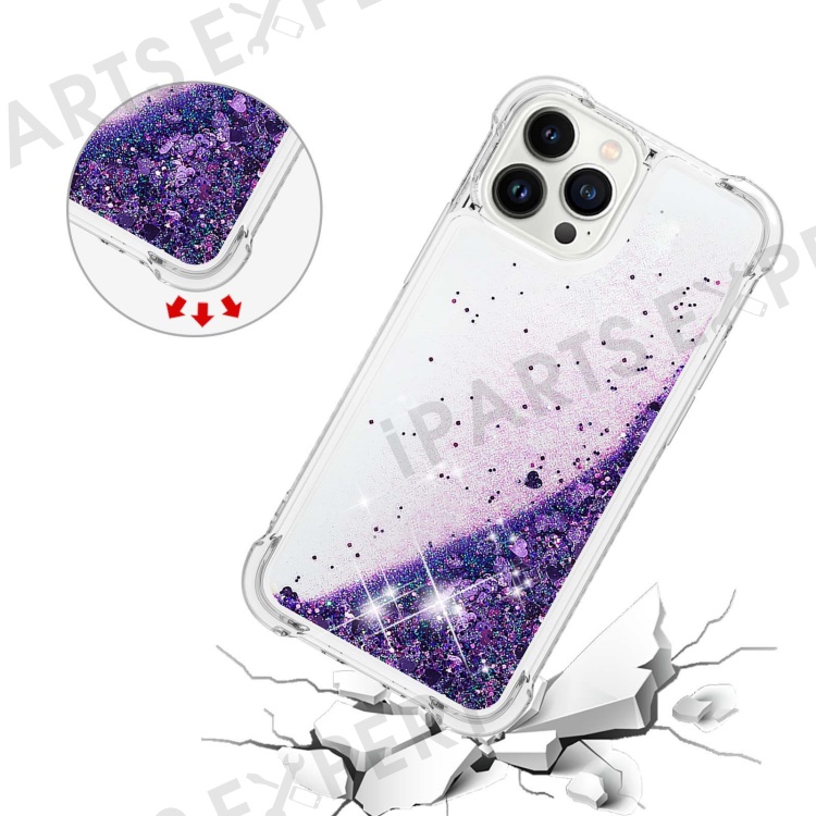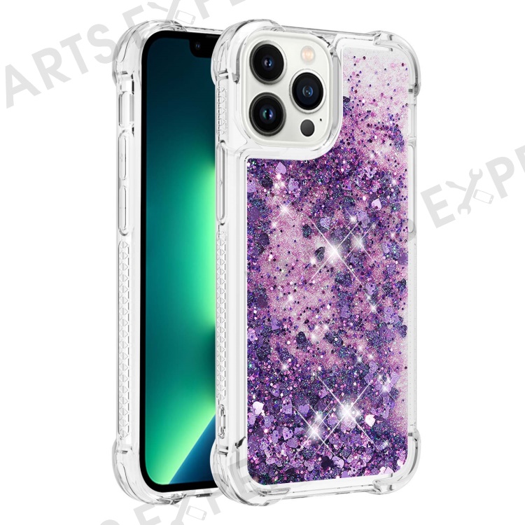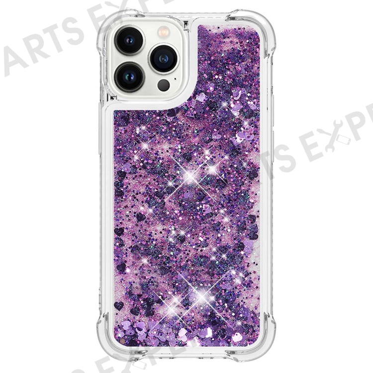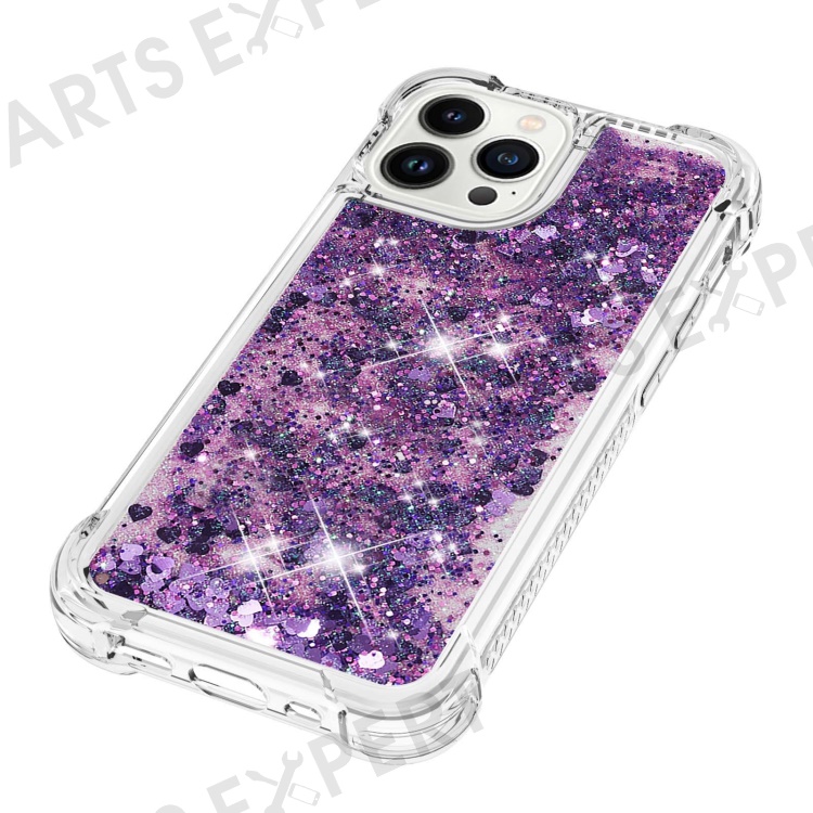 For iPhone 15 Pro TPU Case Glitter Quicksand Shockproof Phone Back Cover - Dark Purple / Hearts