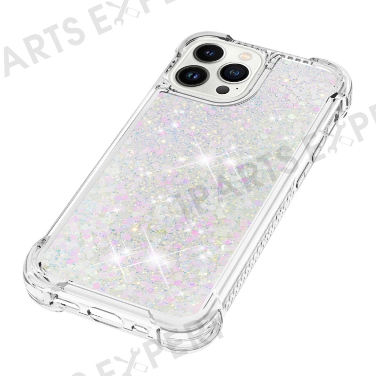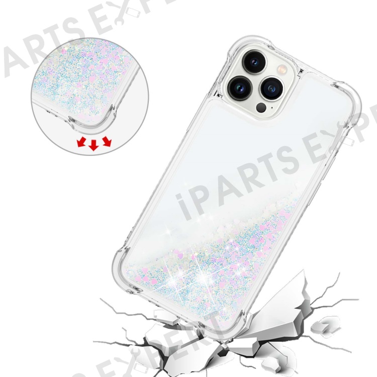 For iPhone 15 Pro TPU Case Glitter Quicksand Shockproof Phone Back Cover - Laser / Hearts