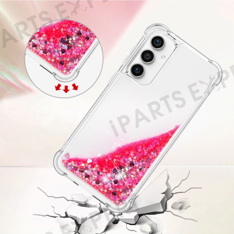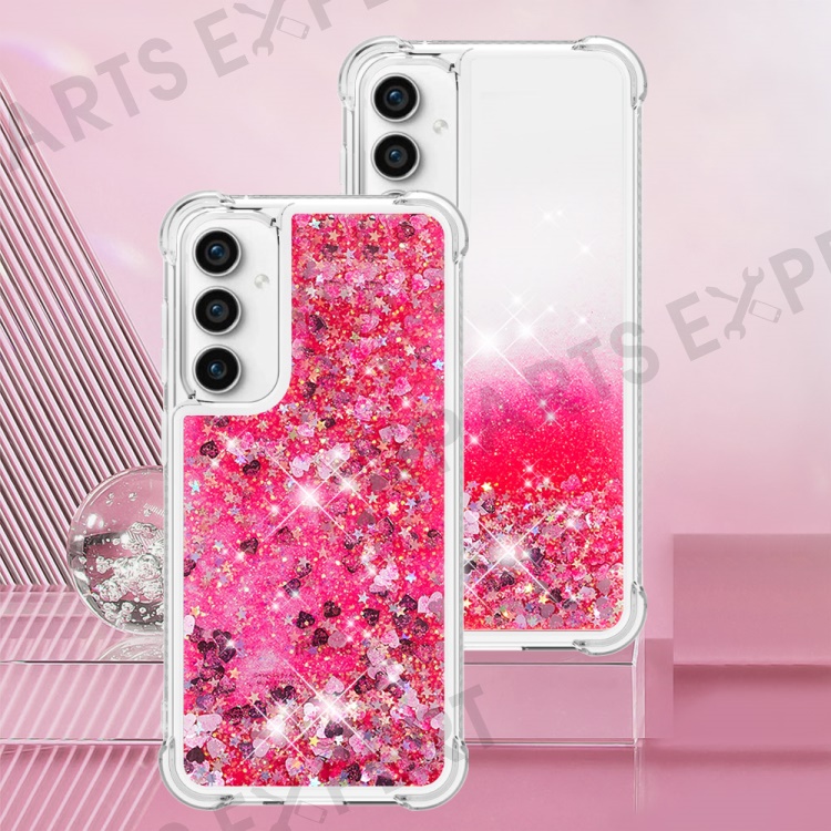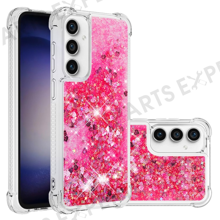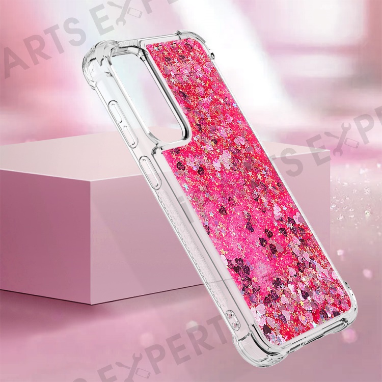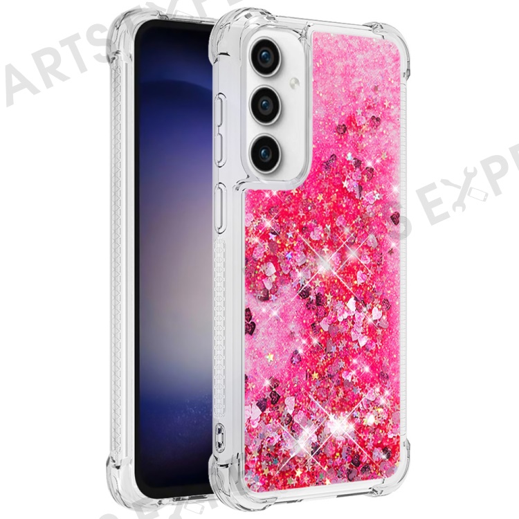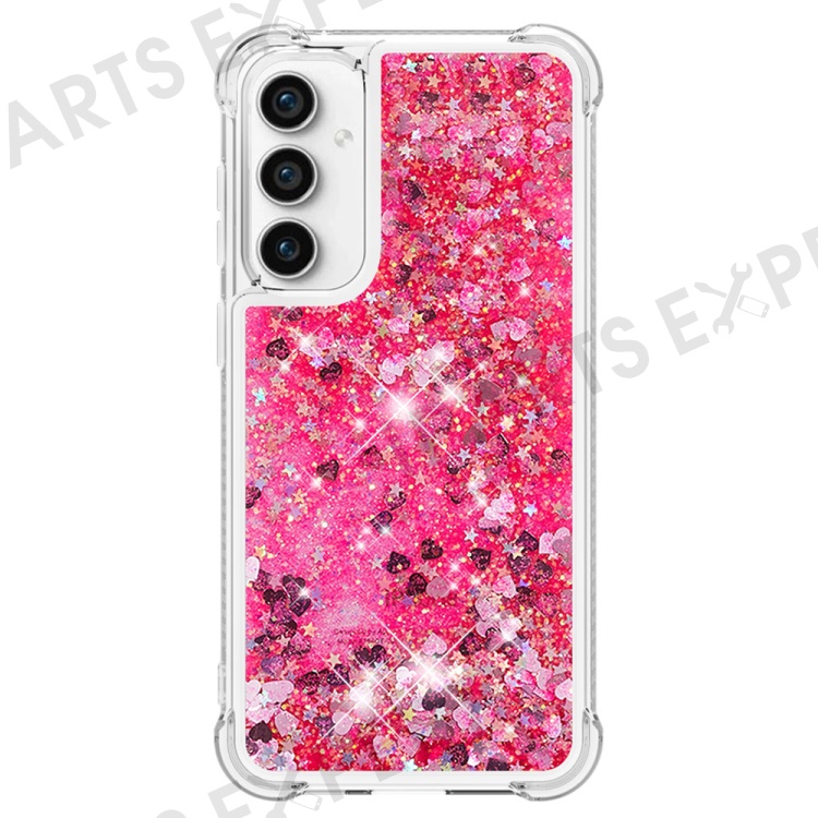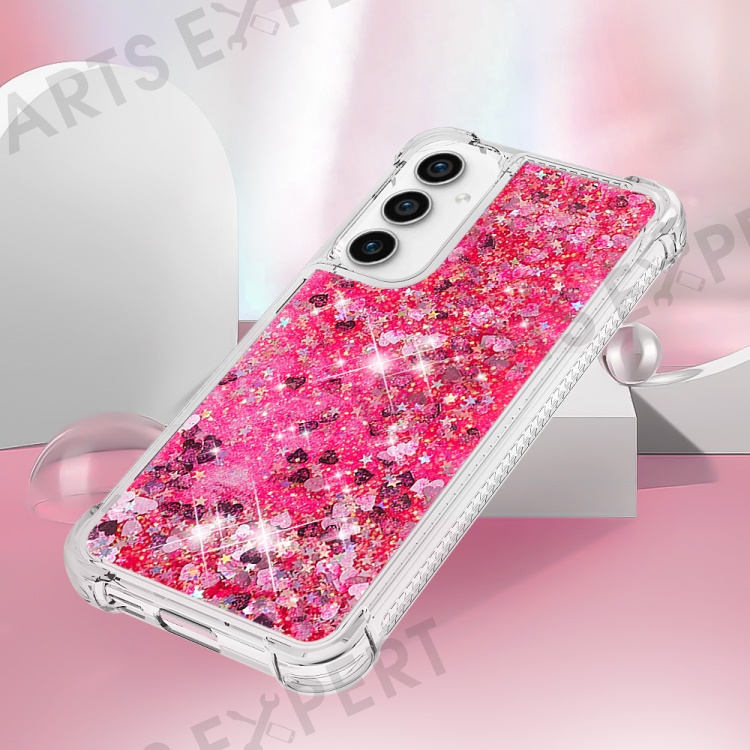 For Samsung Galaxy S23 FE TPU Case Glitter Quicksand Shockproof Phone Back Cover - Pink / Hearts