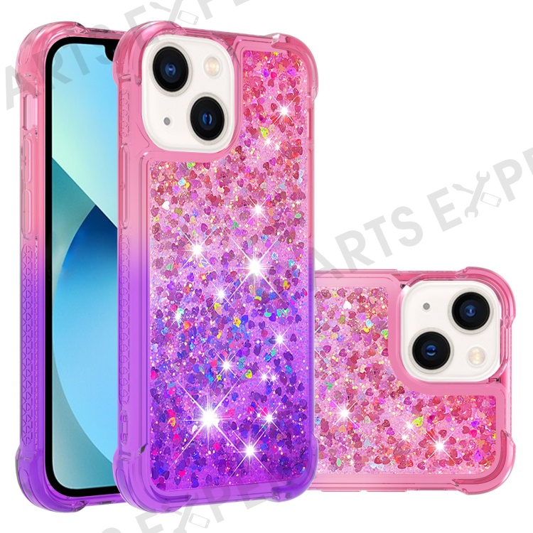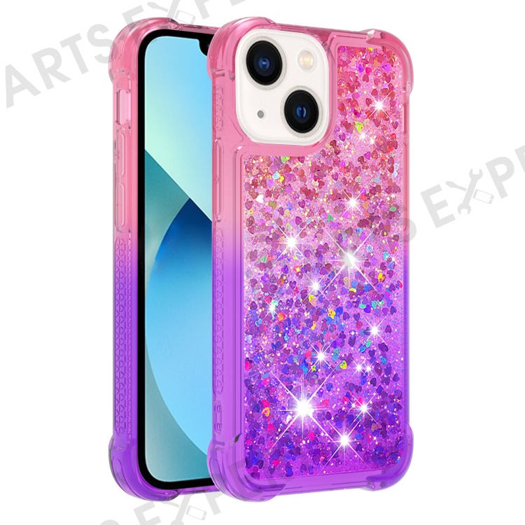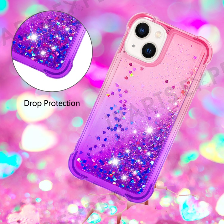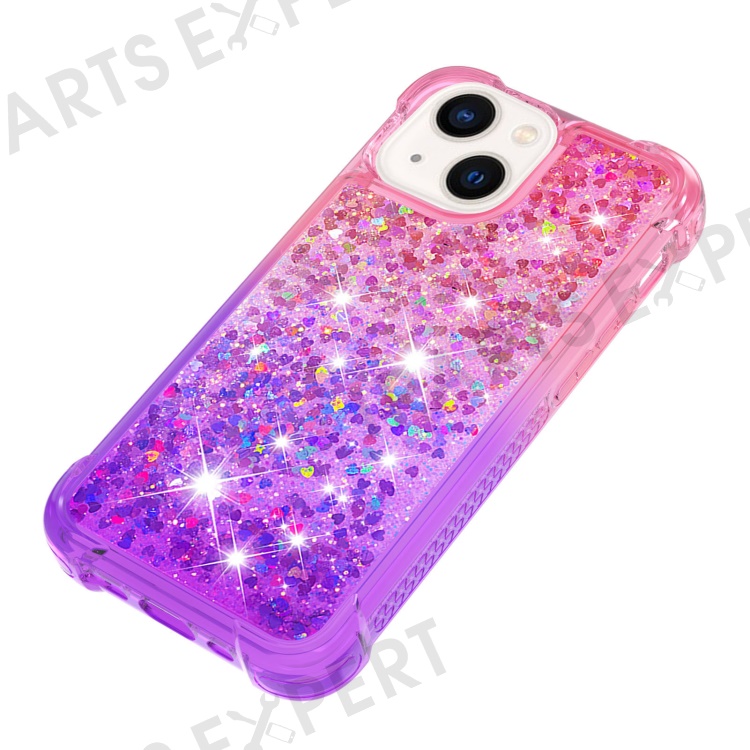 For iPhone 15 Plus TPU Case Gradient Quicksand Phone Back Cover - Pink+Purple