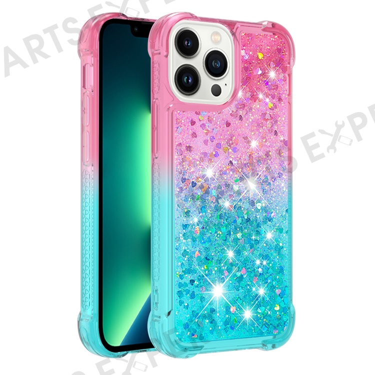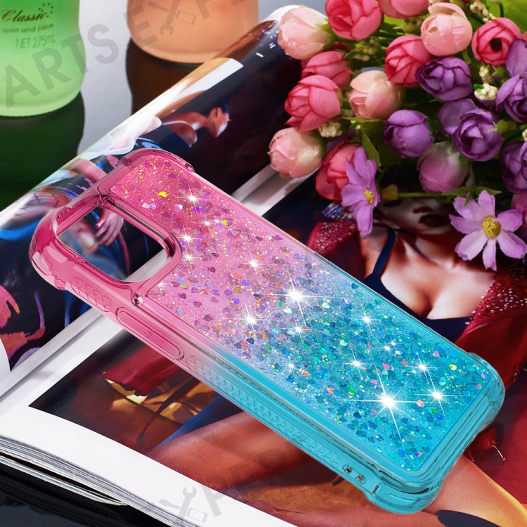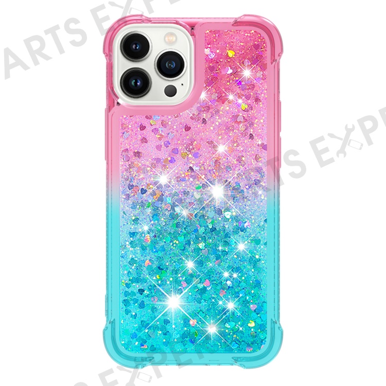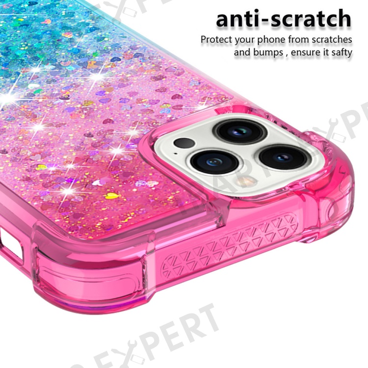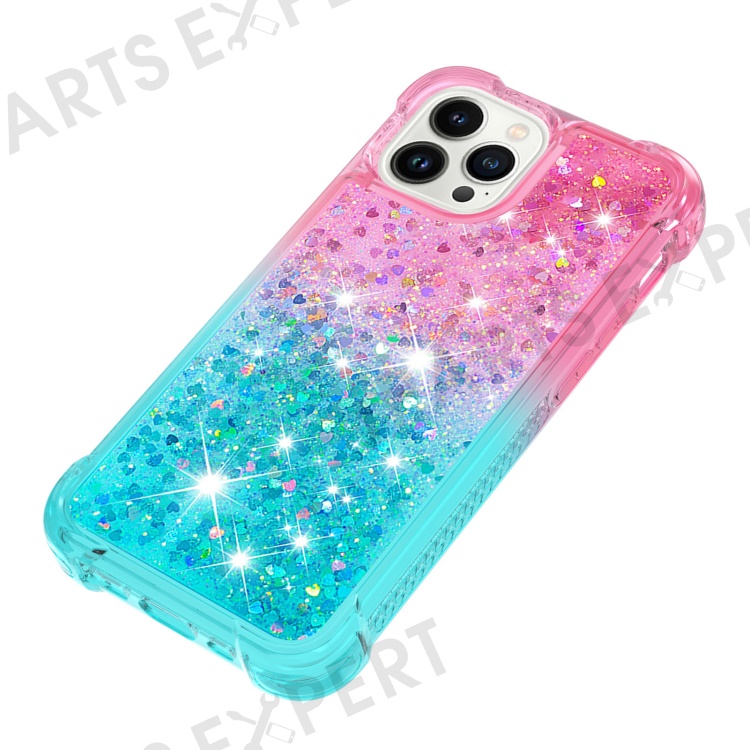 For iPhone 15 Pro Max TPU Case Gradient Quicksand Phone Back Cover - Pink+Sky Blue
