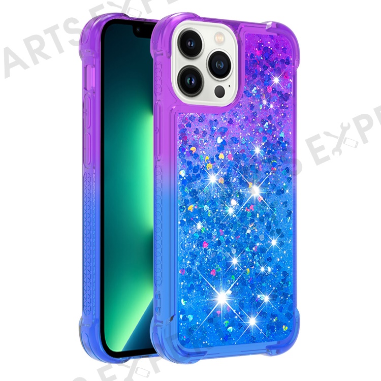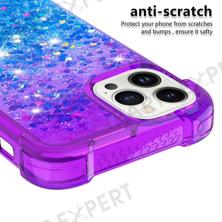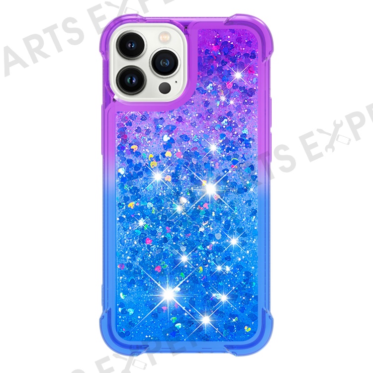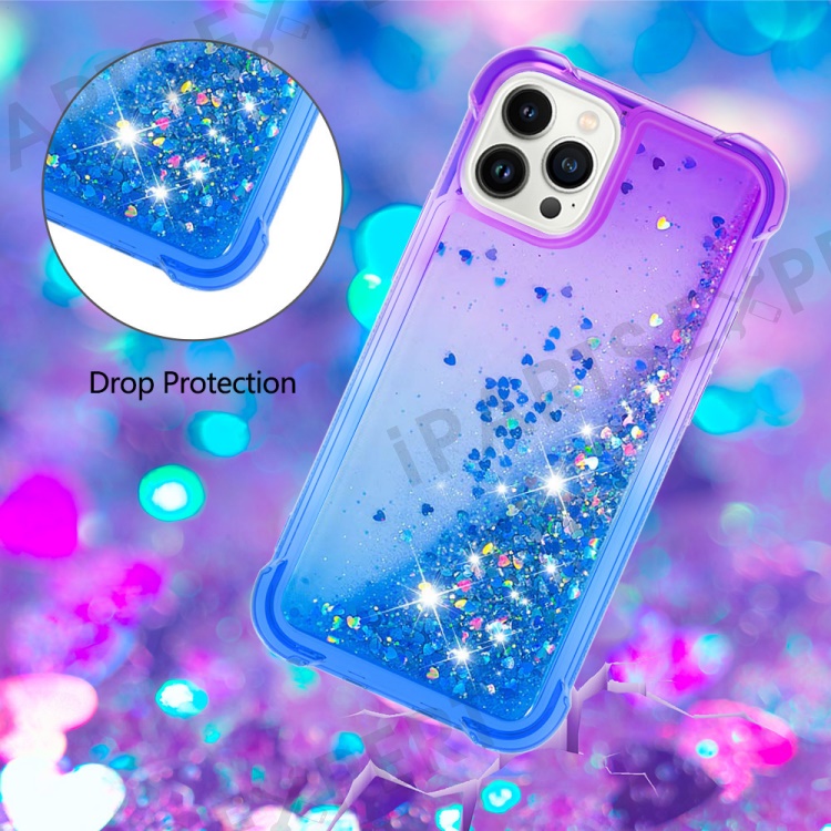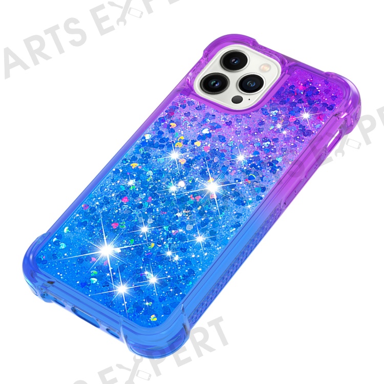 For iPhone 15 Pro Max TPU Case Gradient Quicksand Phone Back Cover - Purple+Sky Blue