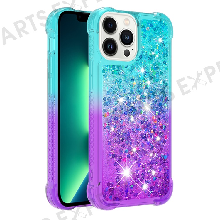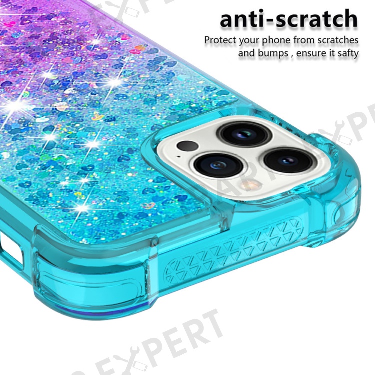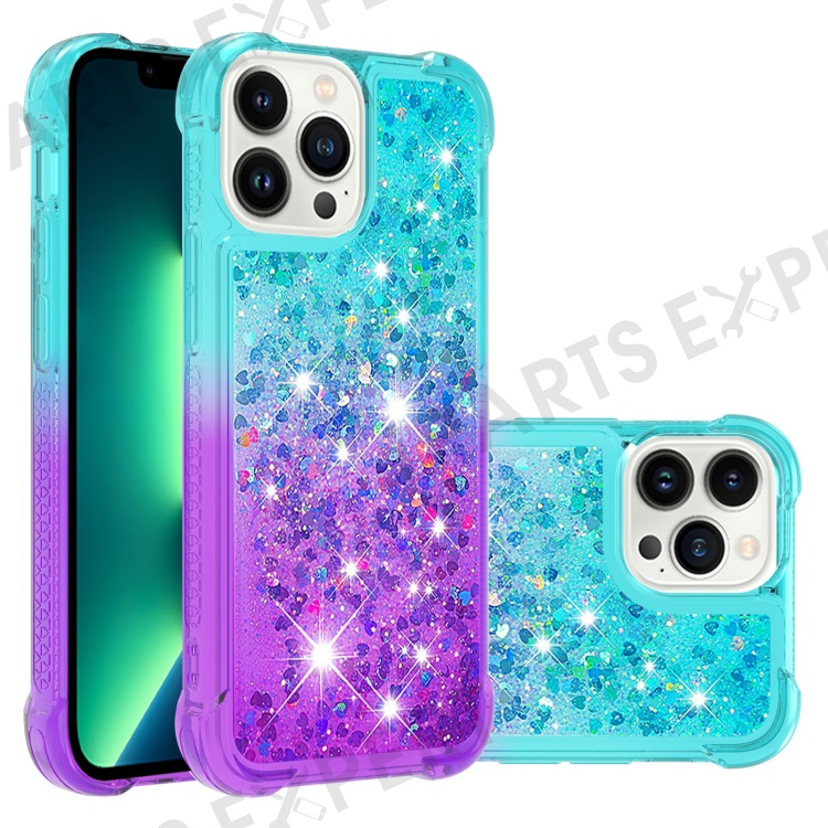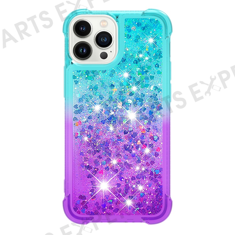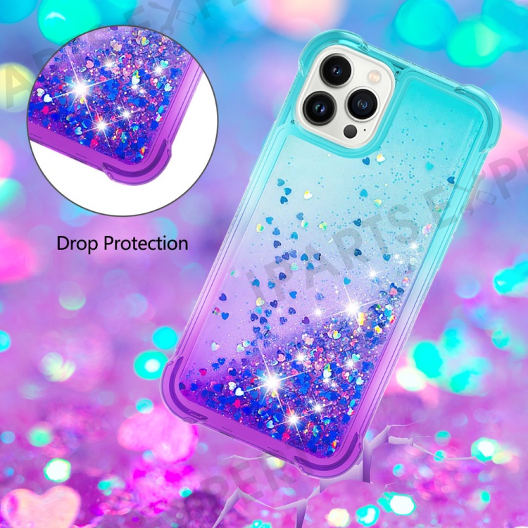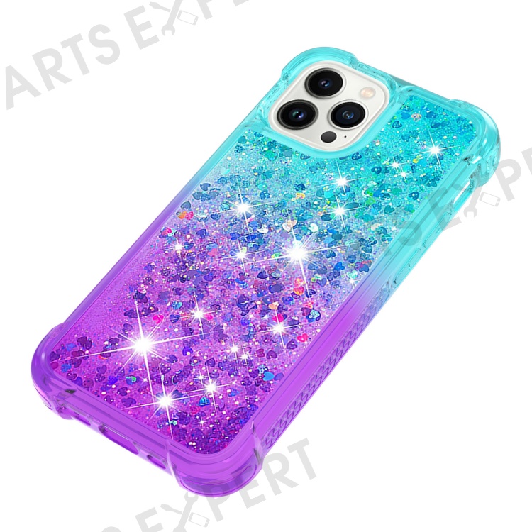 For iPhone 15 Pro Max TPU Case Gradient Quicksand Phone Back Cover - Sky Blue+Purple