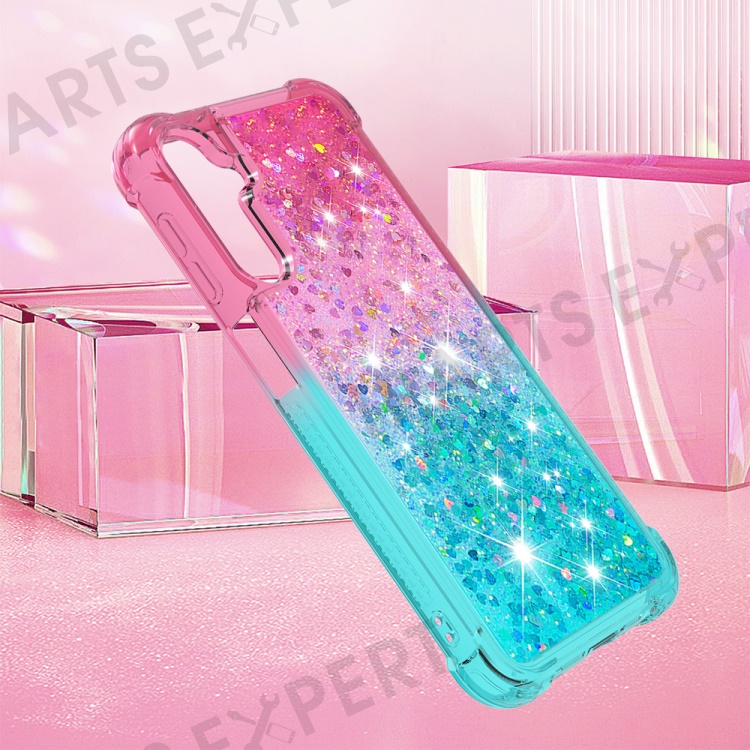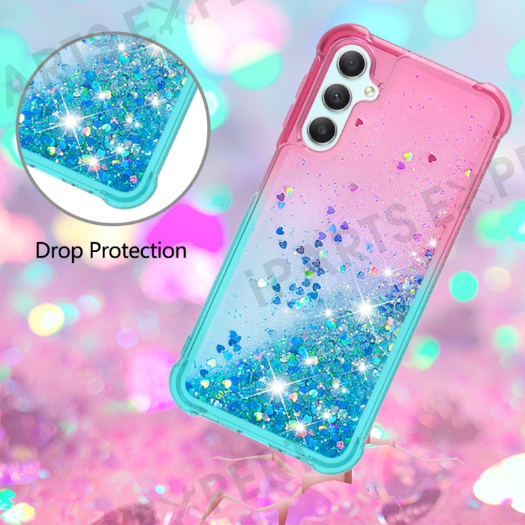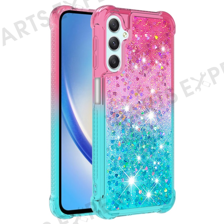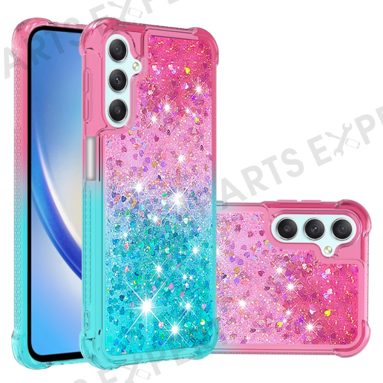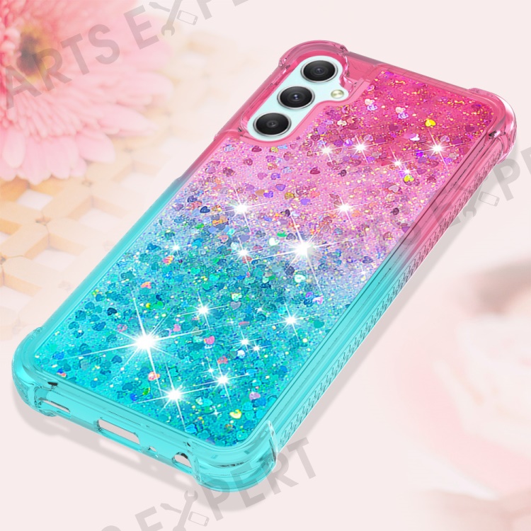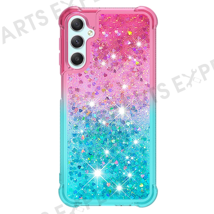 For Samsung Galaxy A24 4G (162.1 x 77.6 x 8.3mm) TPU Case Gradient Quicksand Phone Back Cover - Pink+Sky Blue