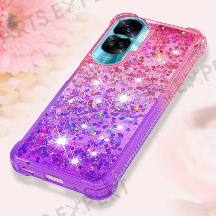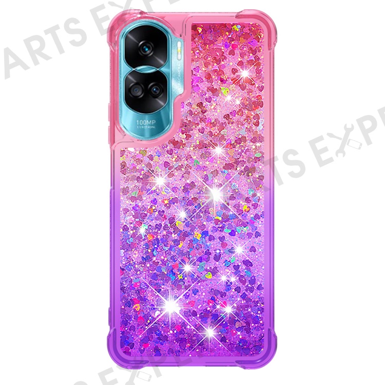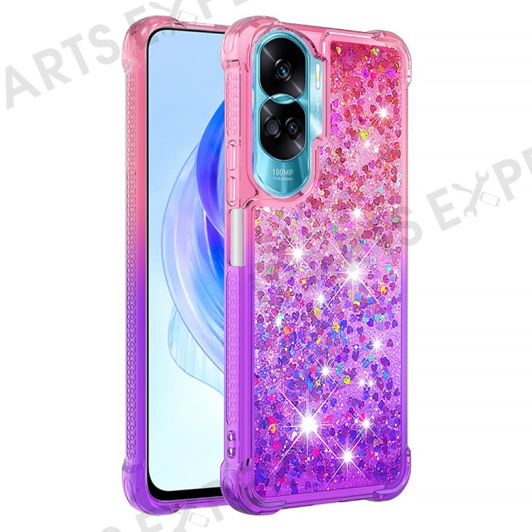 For Honor 90 Lite 5G TPU Case Gradient Quicksand Phone Back Cover - Pink+Purple