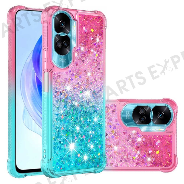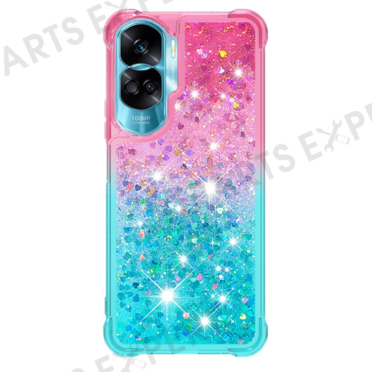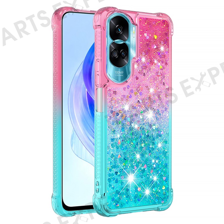 For Honor 90 Lite 5G TPU Case Gradient Quicksand Phone Back Cover - Pink+Sky Blue