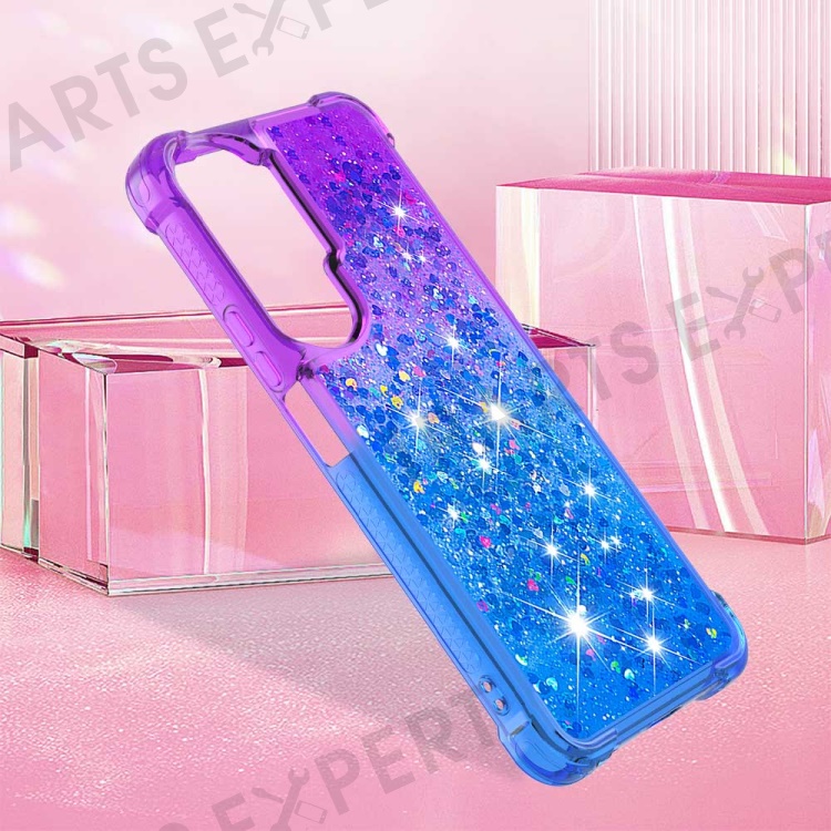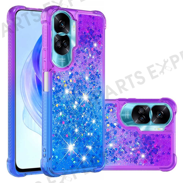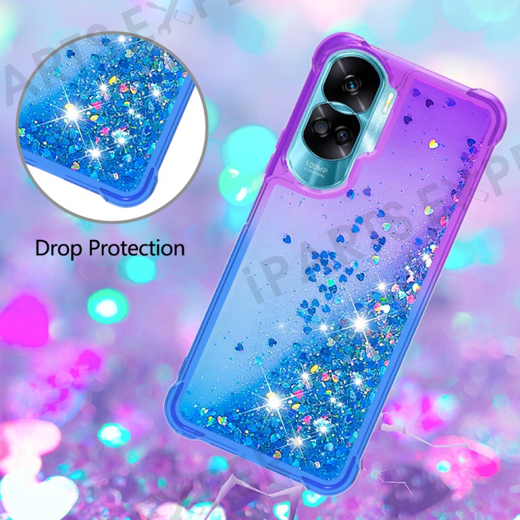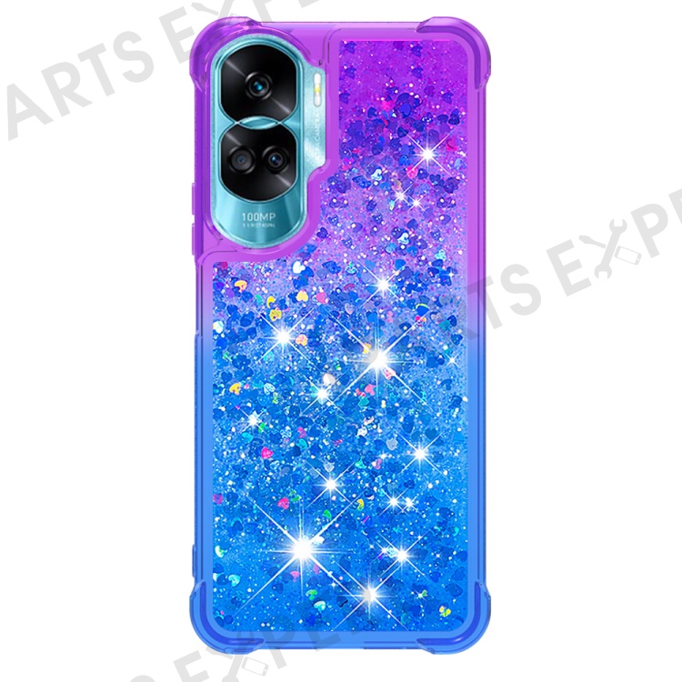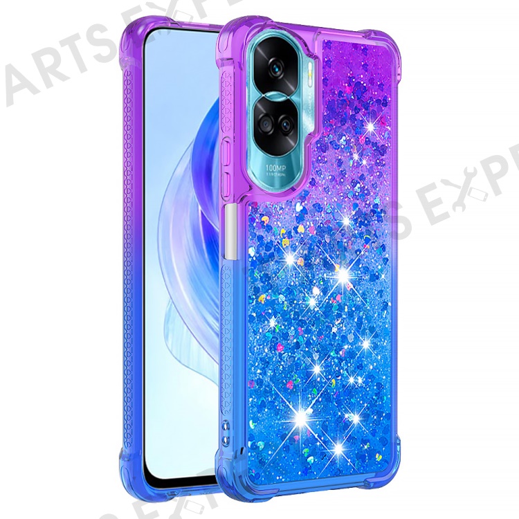 For Honor 90 Lite 5G TPU Case Gradient Quicksand Phone Back Cover - Purple+Sky Blue