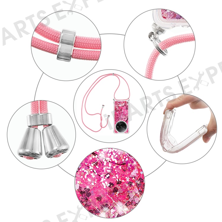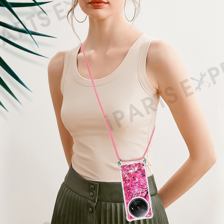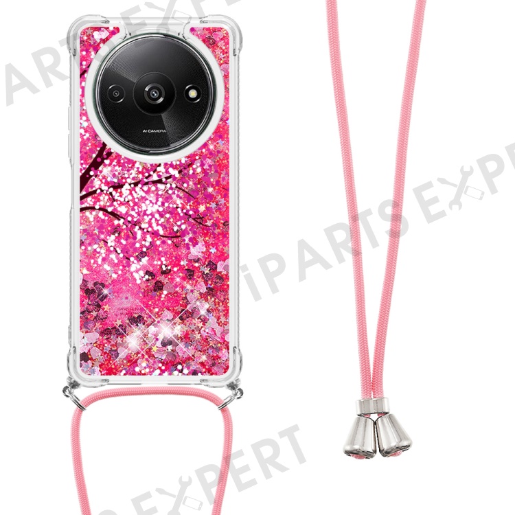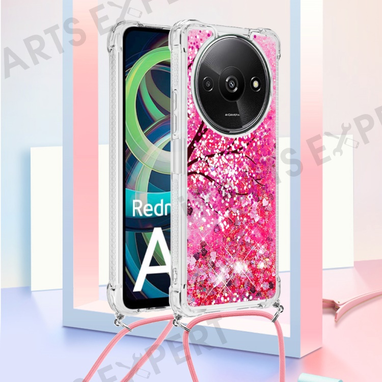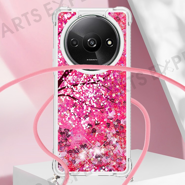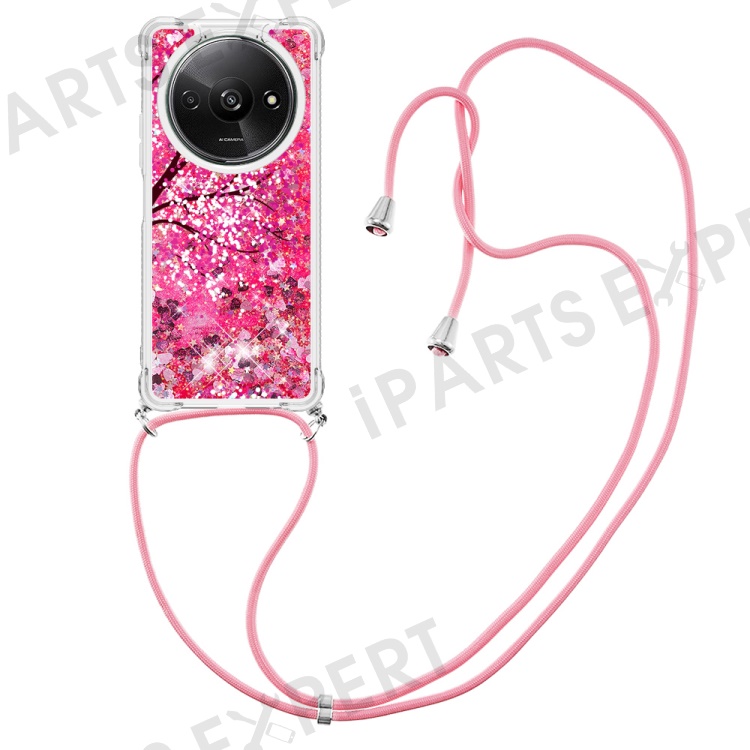 For Xiaomi Redmi A3 4G / Poco C61 4G TPU Case with Lanyard Quicksand Pattern Print Phone Cover - Cherry Blossom