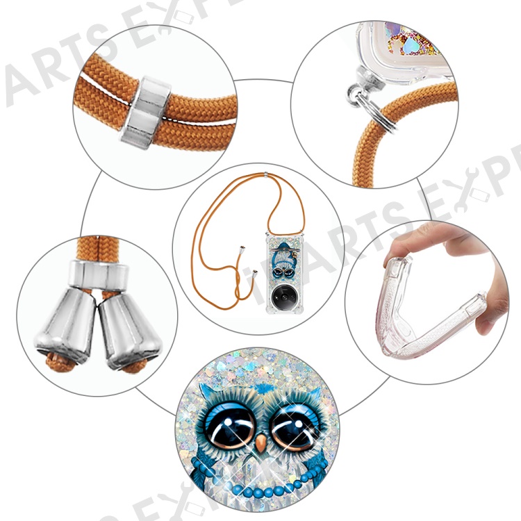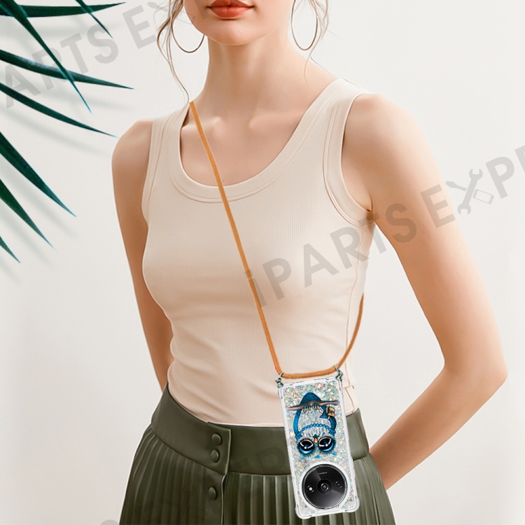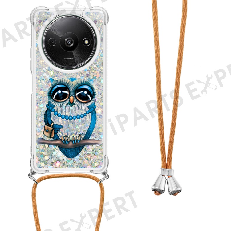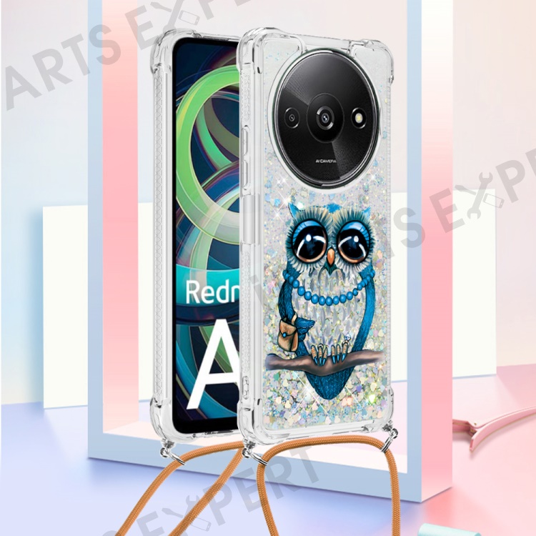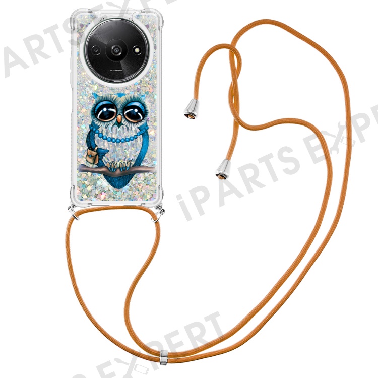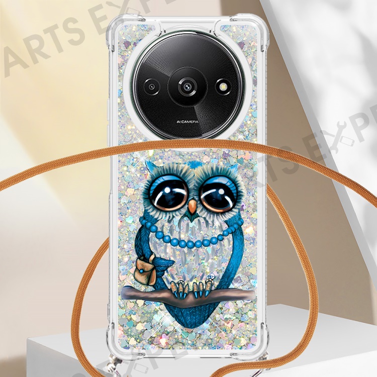 For Xiaomi Redmi A3 4G / Poco C61 4G TPU Case with Lanyard Quicksand Pattern Print Phone Cover - Owl