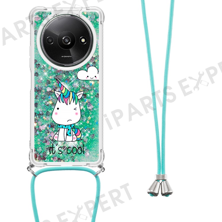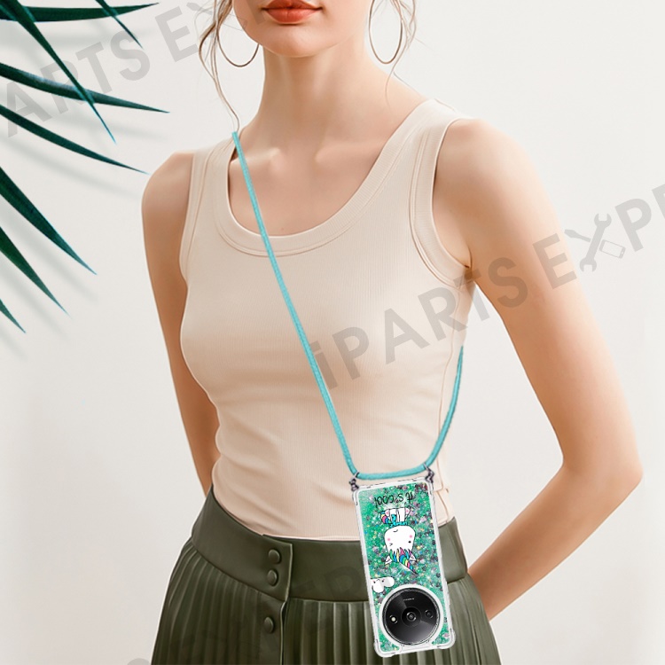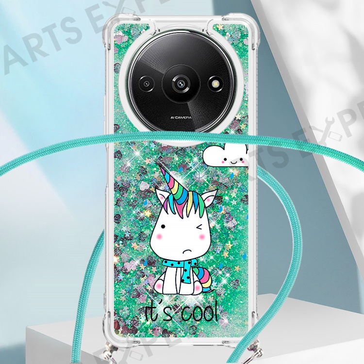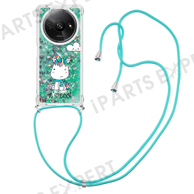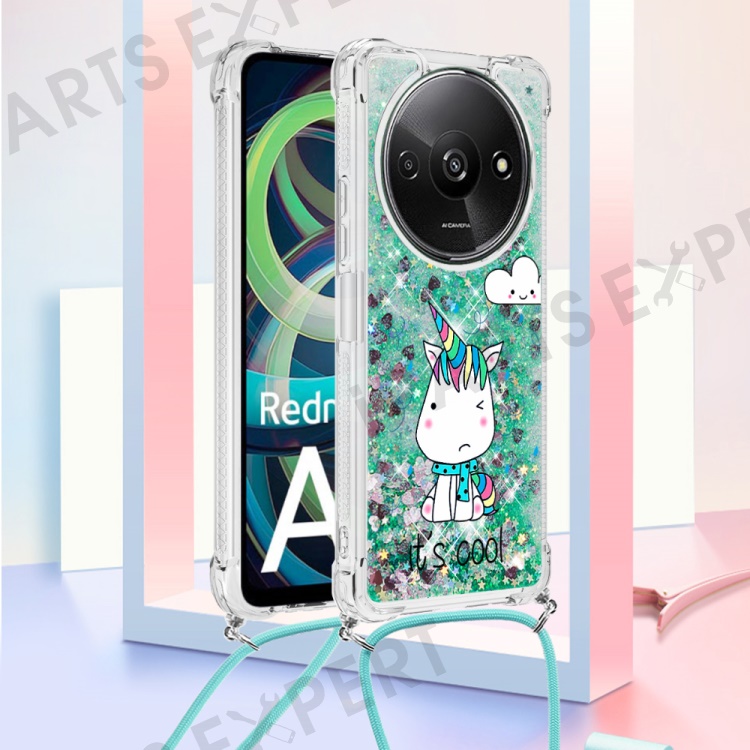 For Xiaomi Redmi A3 4G / Poco C61 4G TPU Case with Lanyard Quicksand Pattern Print Phone Cover - Sitting Horse