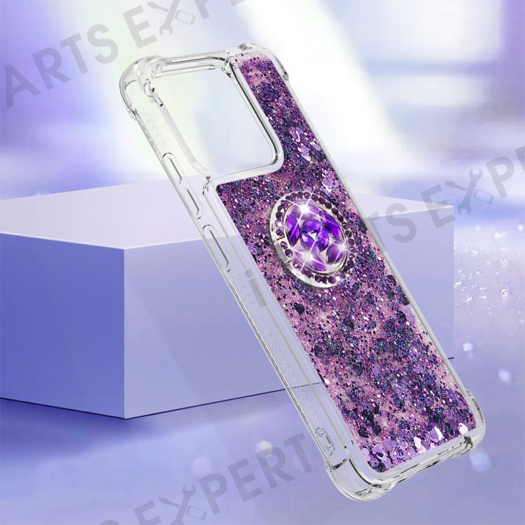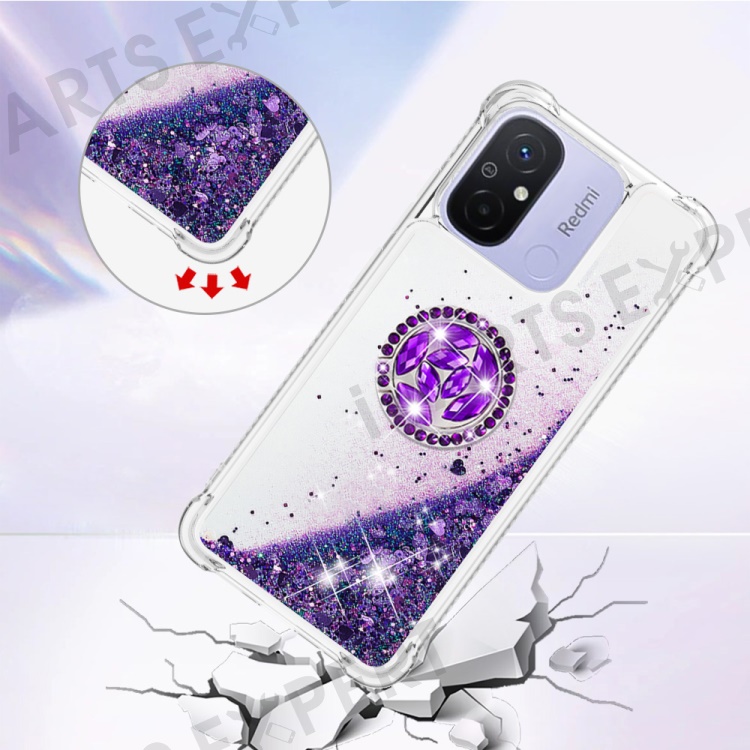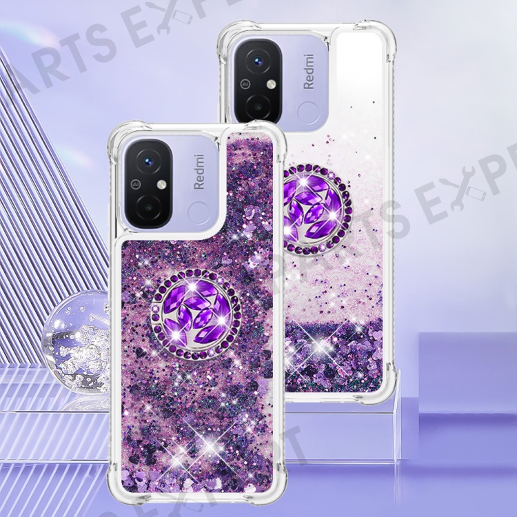 For Xiaomi Redmi 12C 4G / 11A 4G TPU Case with Kickstand Quicksand Shockproof Cover - Dark Purple / Hearts