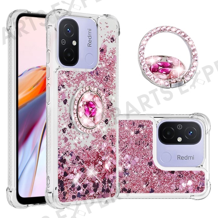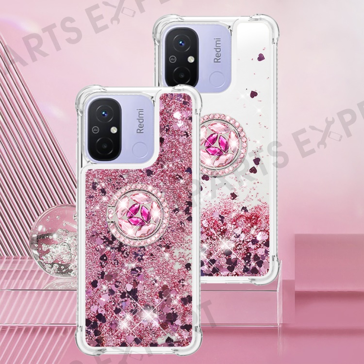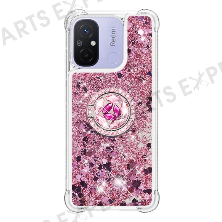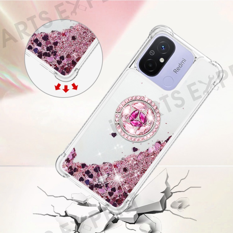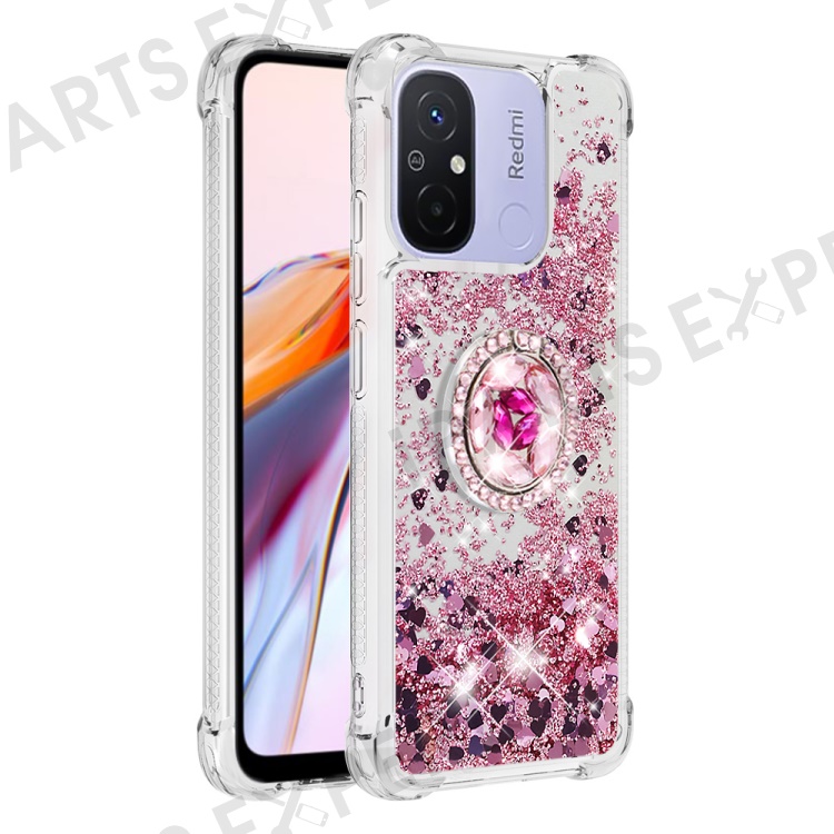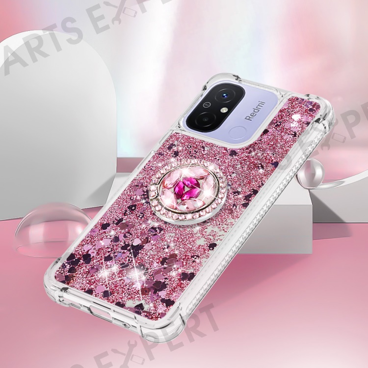 For Xiaomi Redmi 12C 4G / 11A 4G TPU Case with Kickstand Quicksand Shockproof Cover - Rose Gold / Hearts