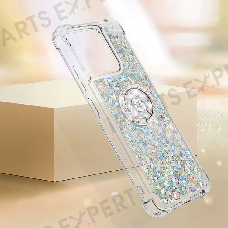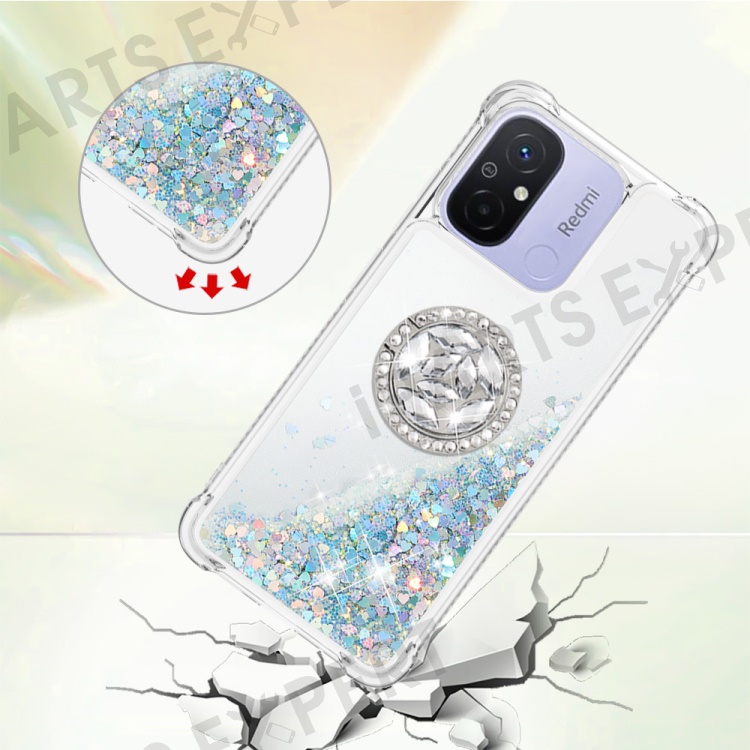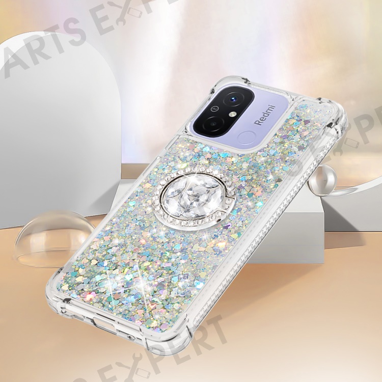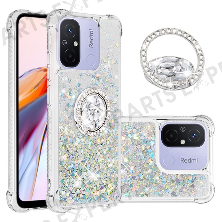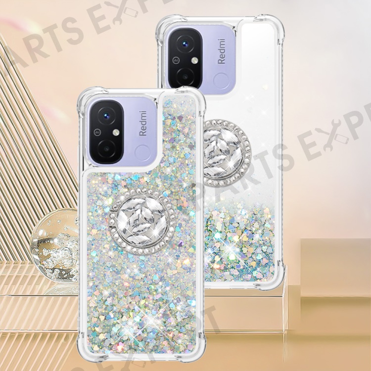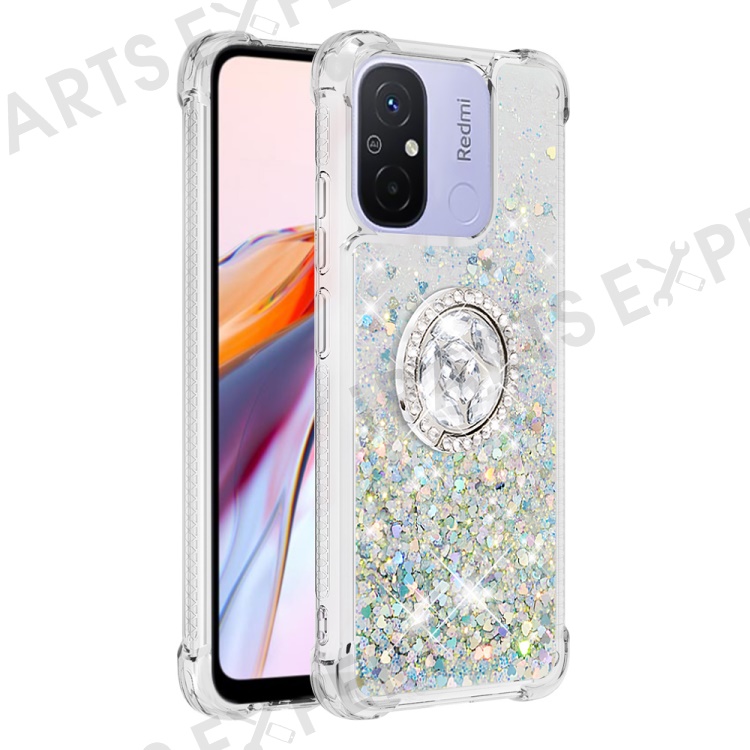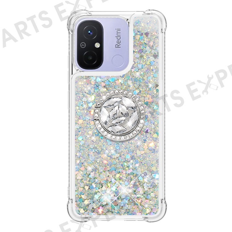 For Xiaomi Redmi 12C 4G / 11A 4G TPU Case with Kickstand Quicksand Shockproof Cover - Silver / Hearts